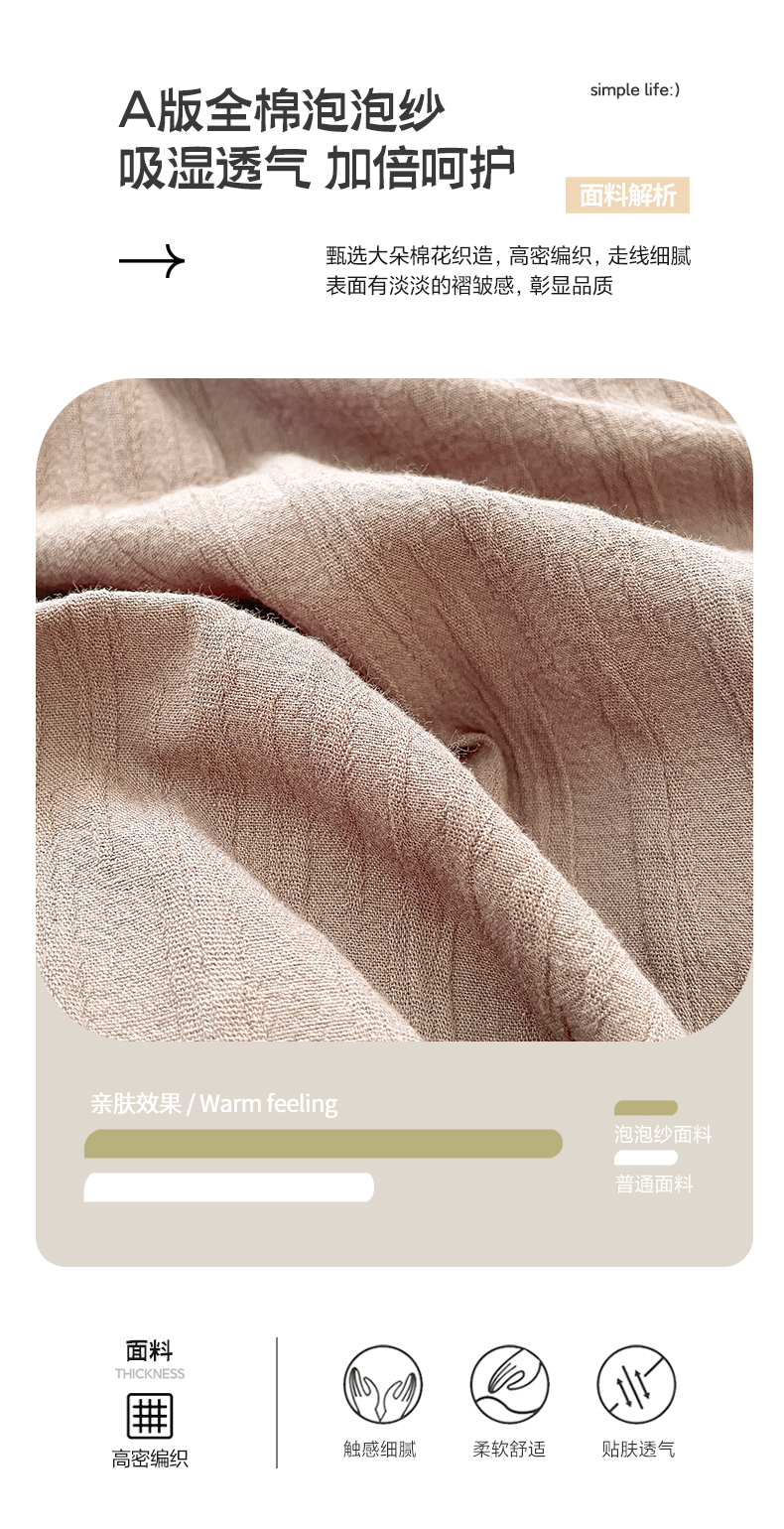 (总)雅居纺家纺 2022新款全棉华夫格普通款四件套,焦糖,米驼,奶油白,柔粉,深灰,雾蓝,月灰
