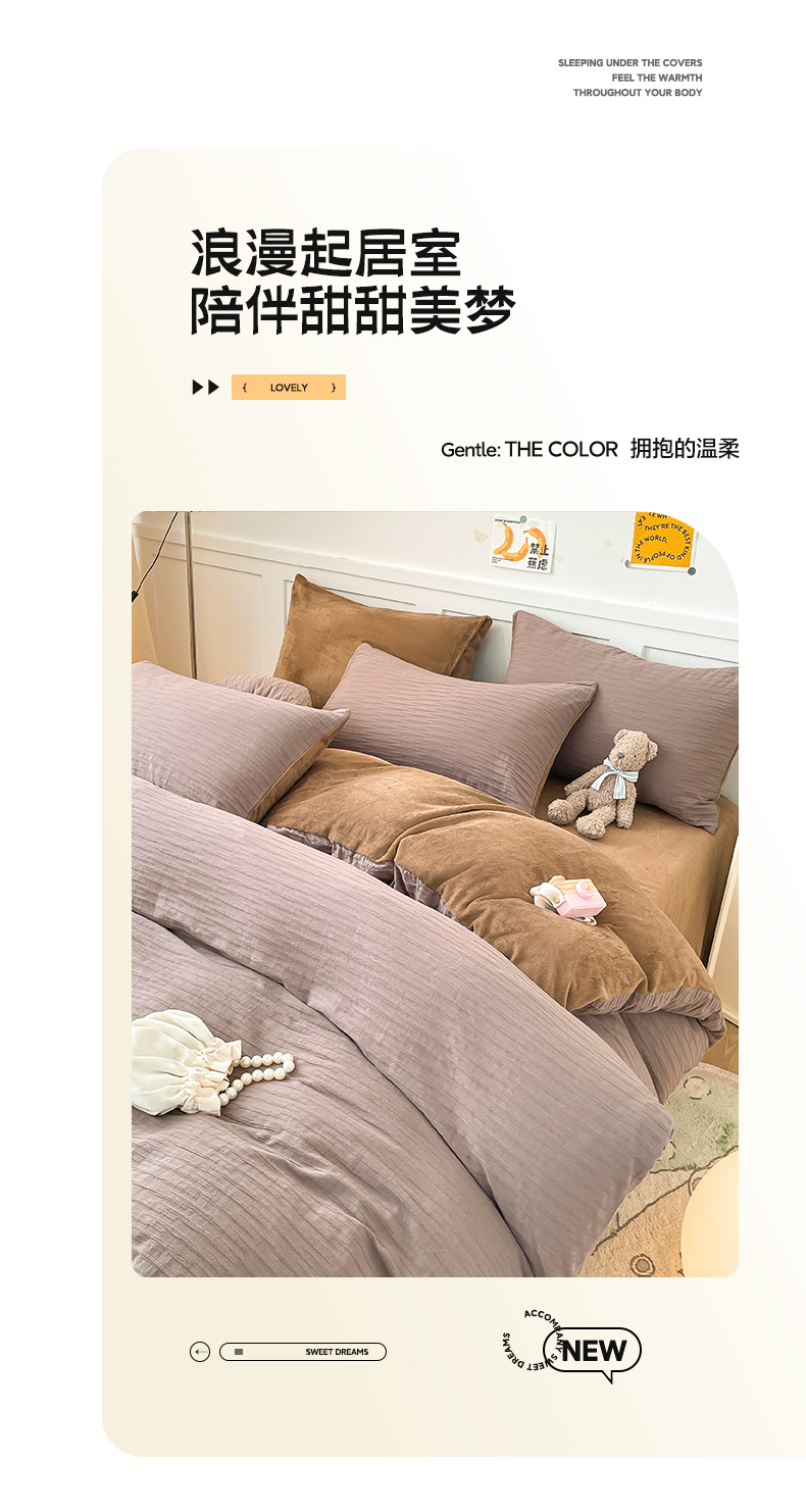 (总)雅居纺家纺 2025新款简约兔绒球球保暖舒适四件套-波点,波点-白咖,波点-粉黄,波点-咖,波点-蓝黄
