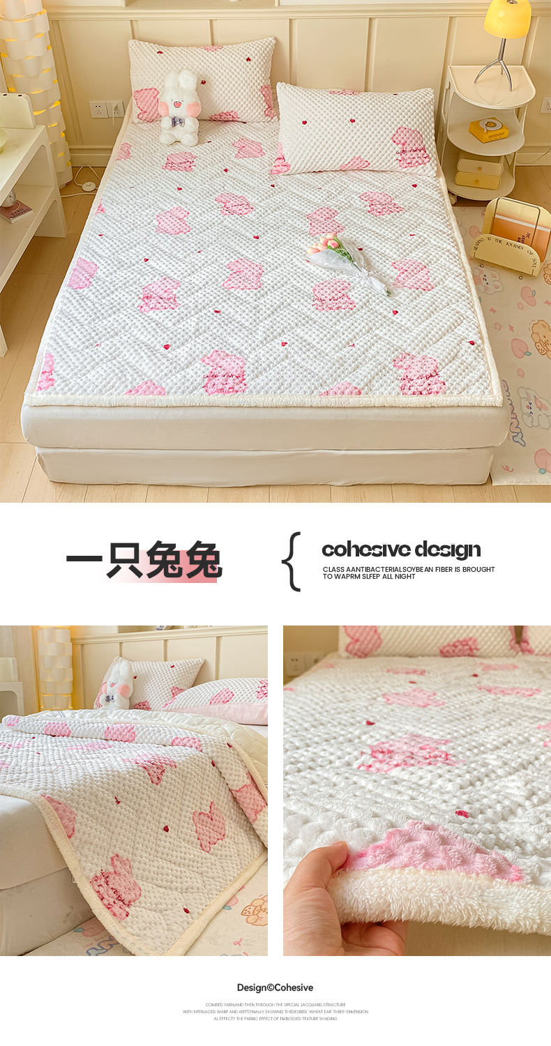 澳梵家居 2023新款豆豆绒夹棉床护垫 一只兔兔