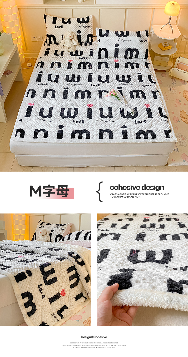 澳梵家居 2023新款豆豆绒夹棉床护垫 M字母