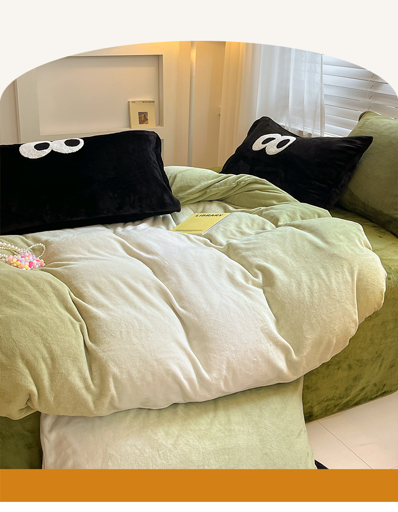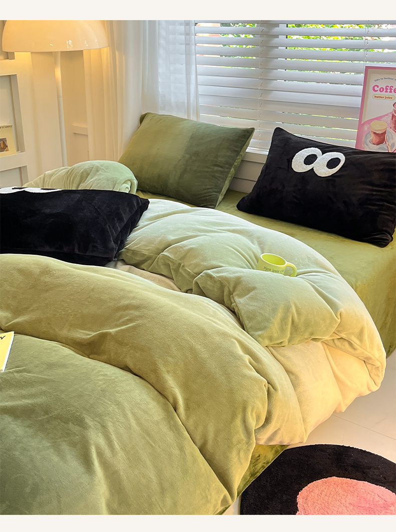 雅居纺家纺 2023新款毛巾绣混搭牛奶绒四件套 渐变混搭绿