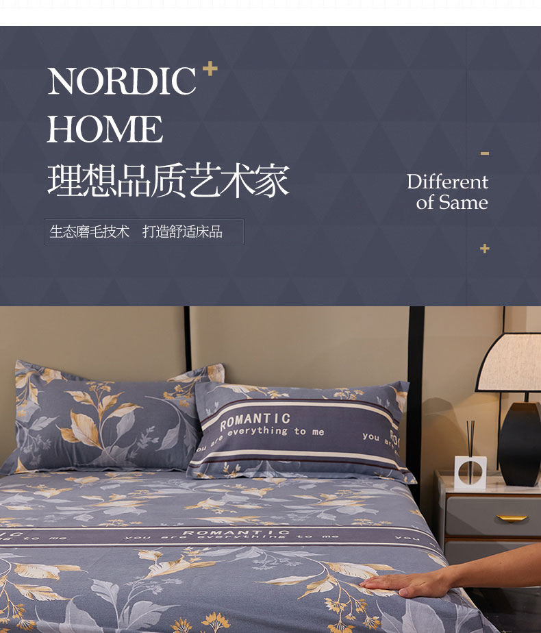 商品名称:晶缦 2023新款格林系列全棉活性磨毛多规格床笠 镜中花