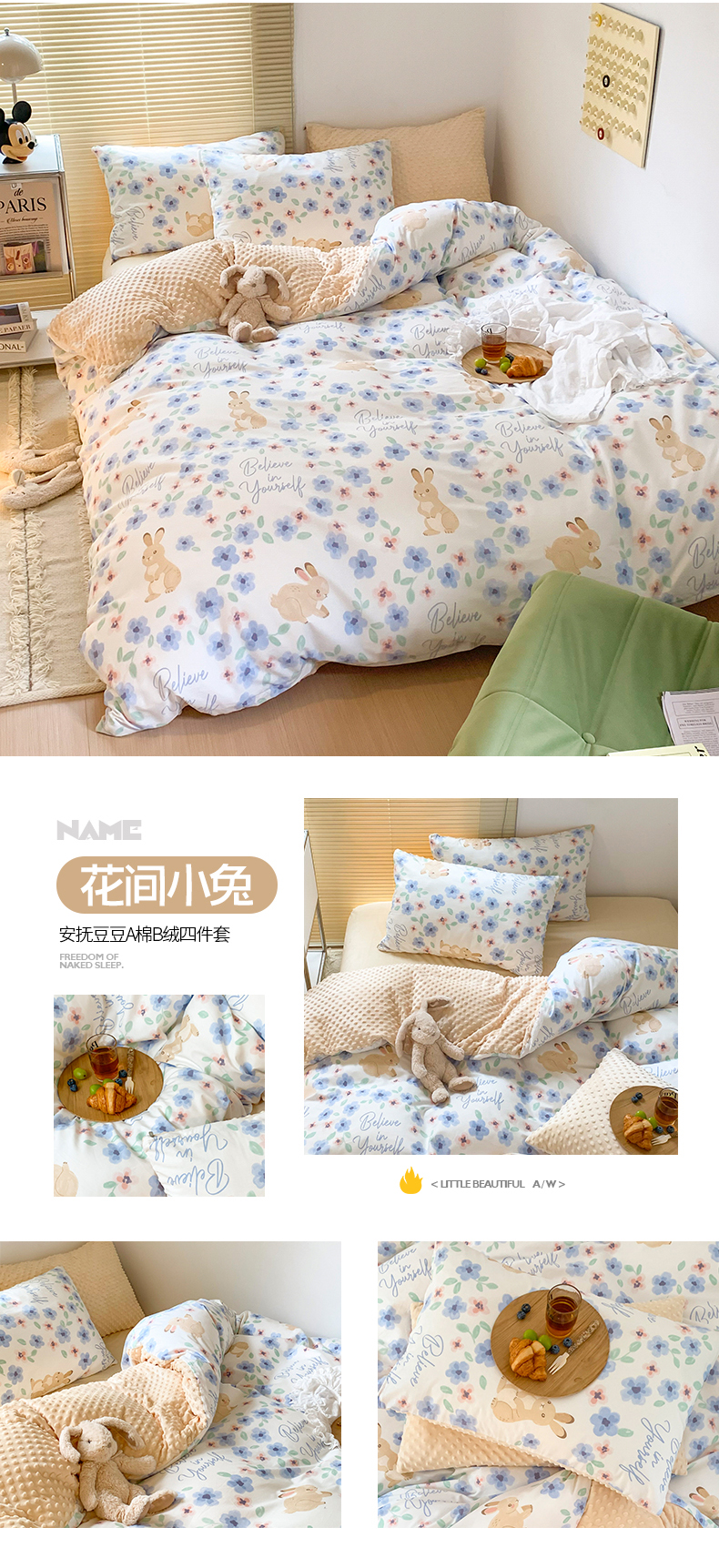 商品名称:金奇达 2023新款豆豆棉绒四件套 花间小兔
