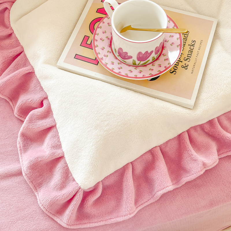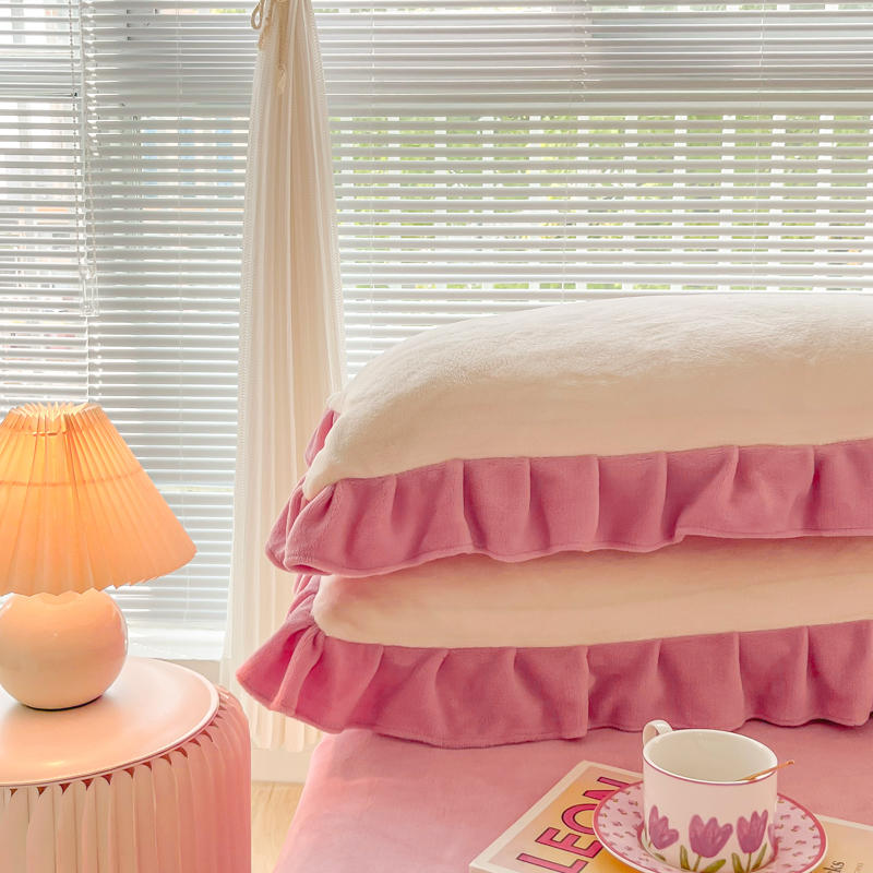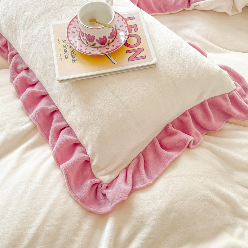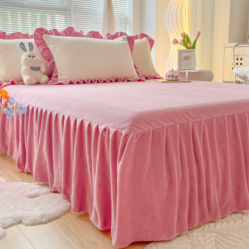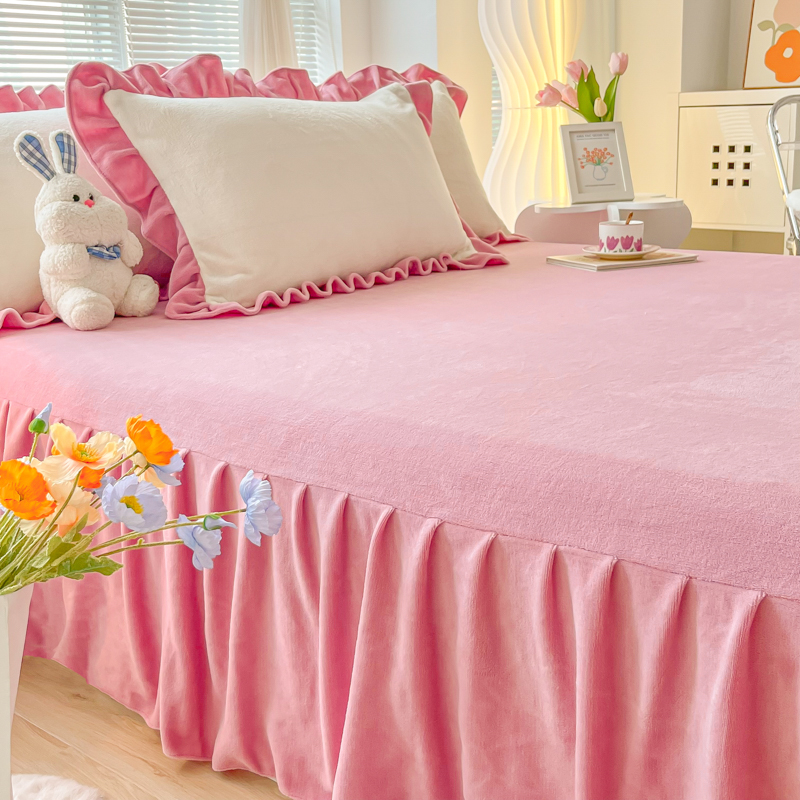 商品名称:十里居 2023新款纯色韩版花边牛奶绒单床裙三件套 粉白