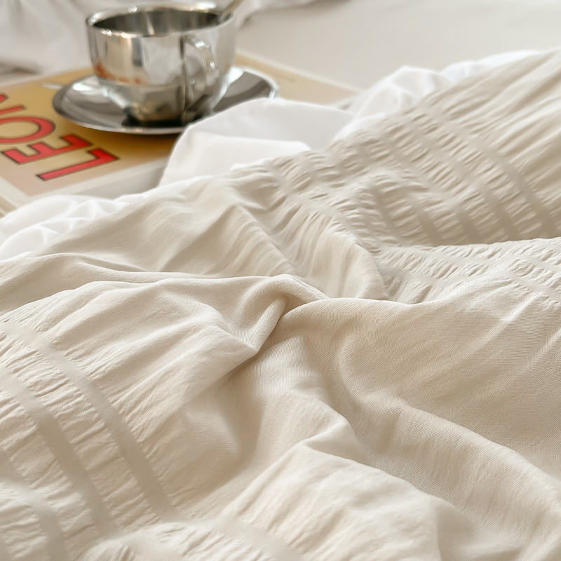 (总)十里居 2025新款泡泡纱提花韩版水洗棉公主格花边款四件套,罗兰紫,蜜桃粉,抹茶绿,柚子黄,月光灰,云朵蓝