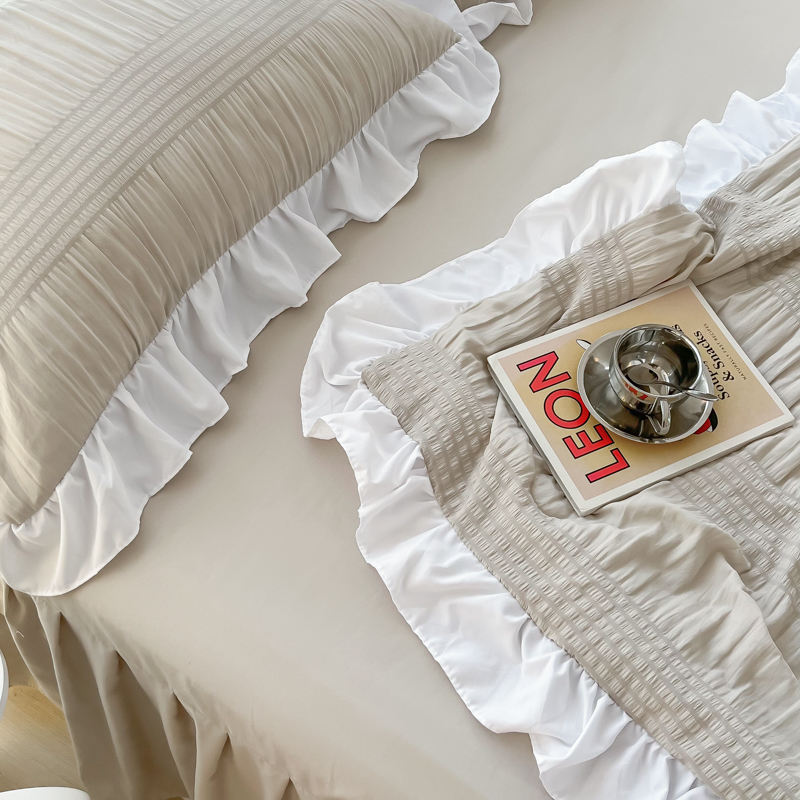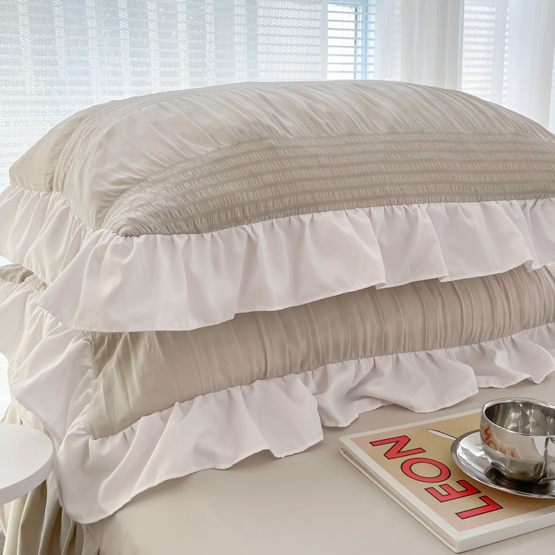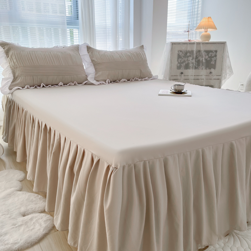 十里居 2023新款韩版花边水洗棉单床裙三件套 浅米灰