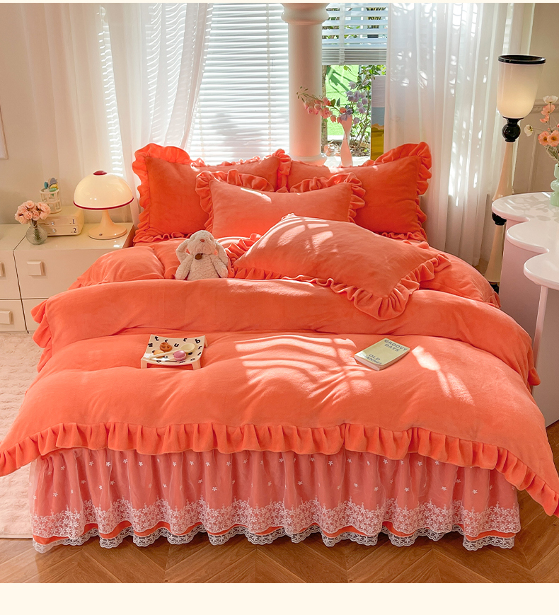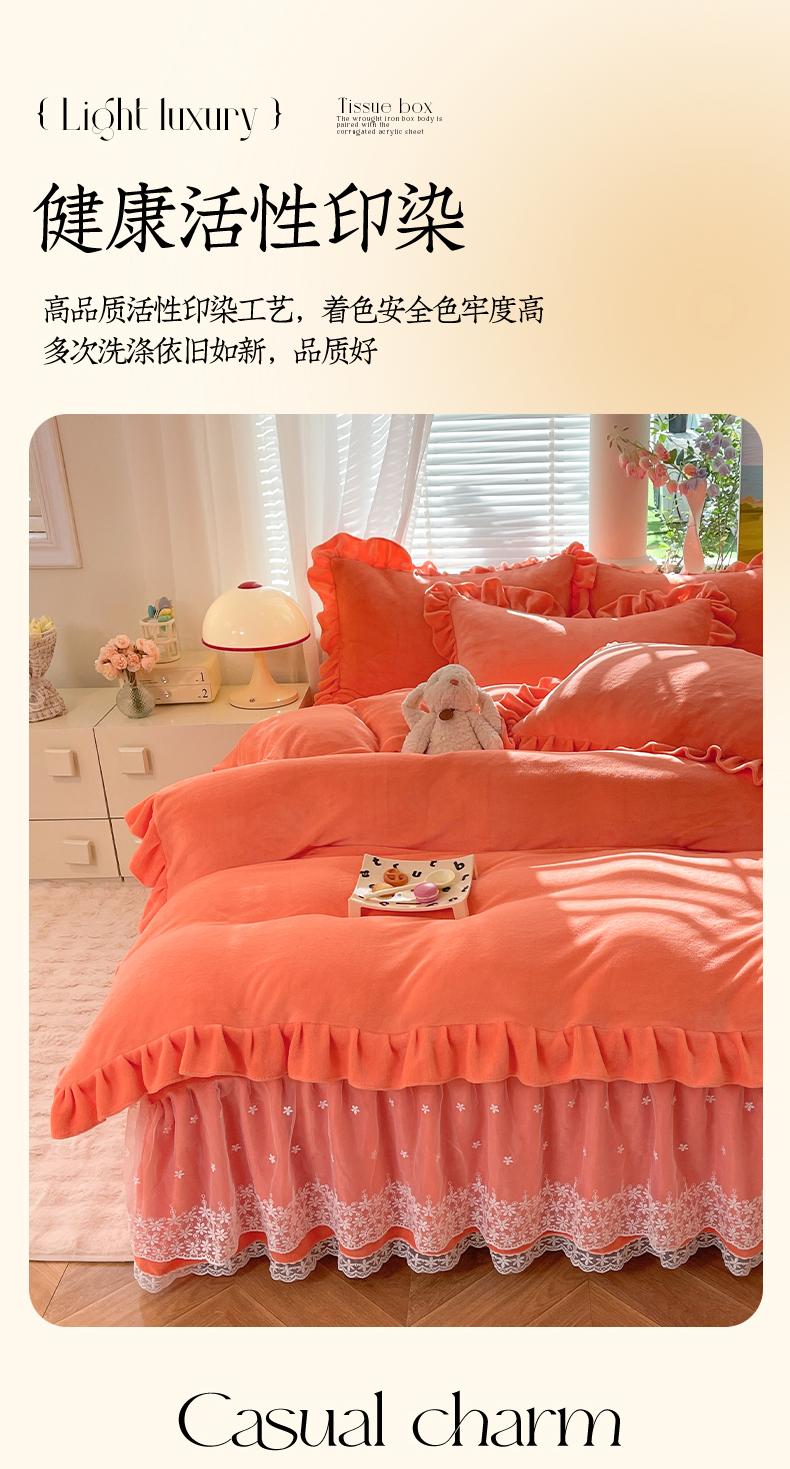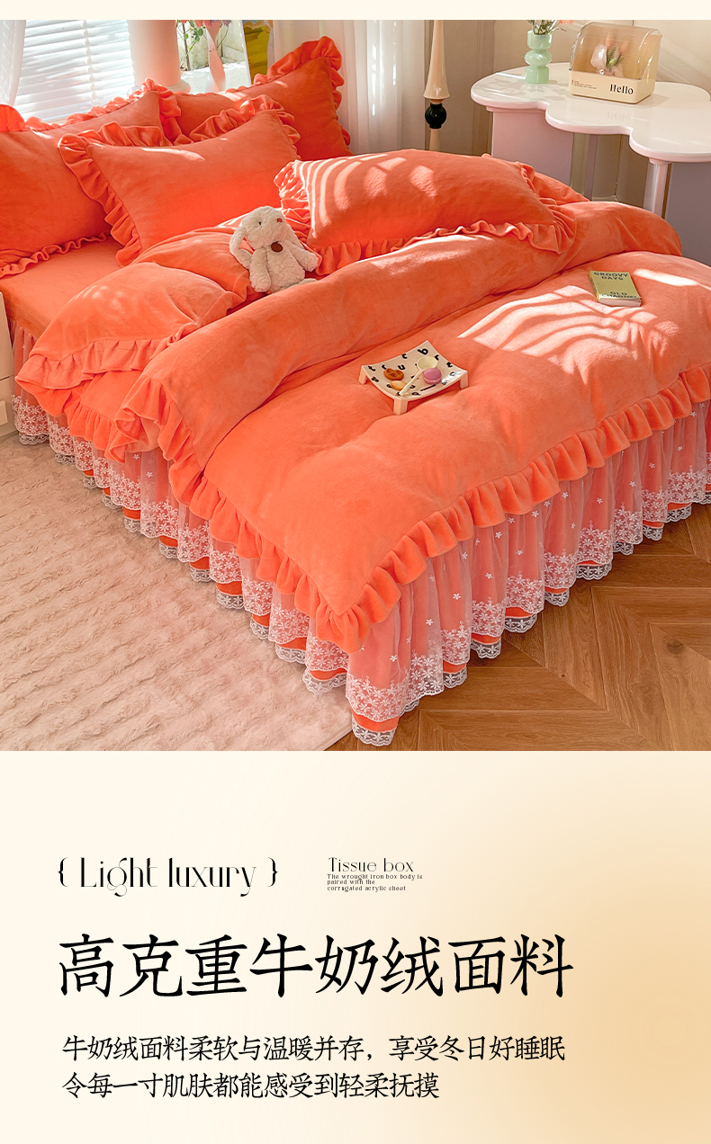 【8斤重】2025新款秋冬加厚牛奶绒床裙款四件套法式浪漫蕾丝花边工艺-遇见系列 遇见-香妃橙