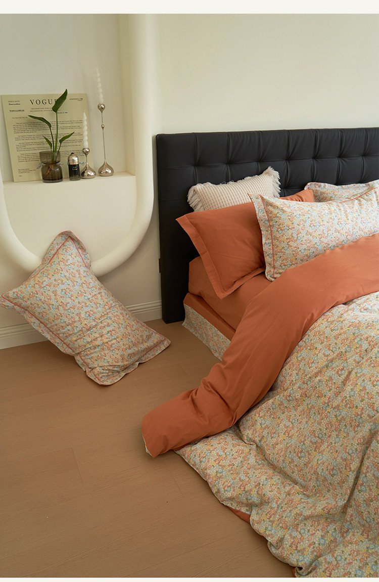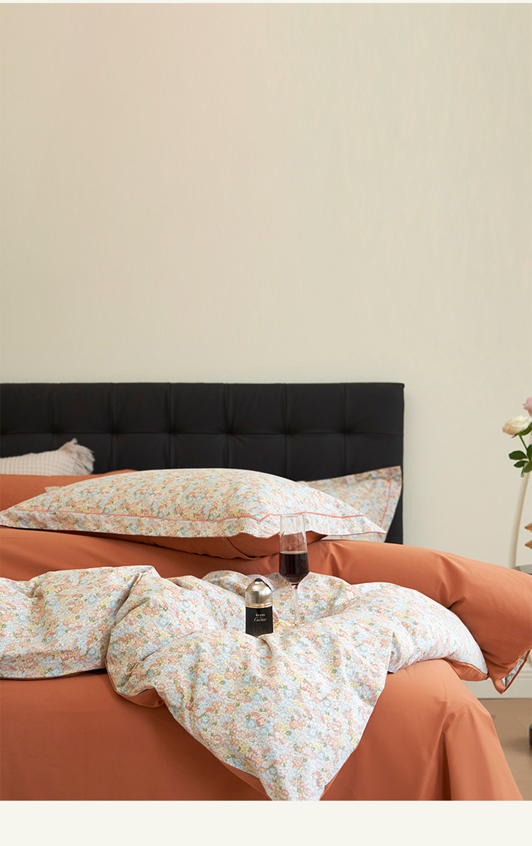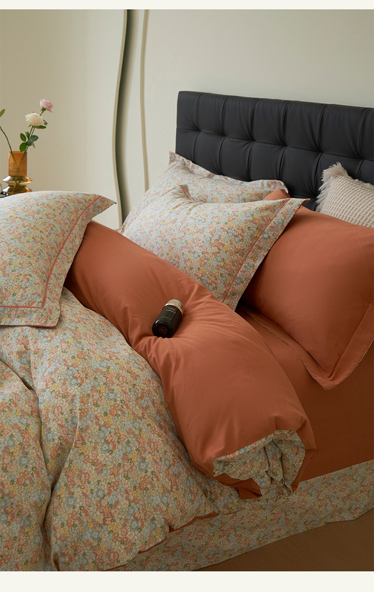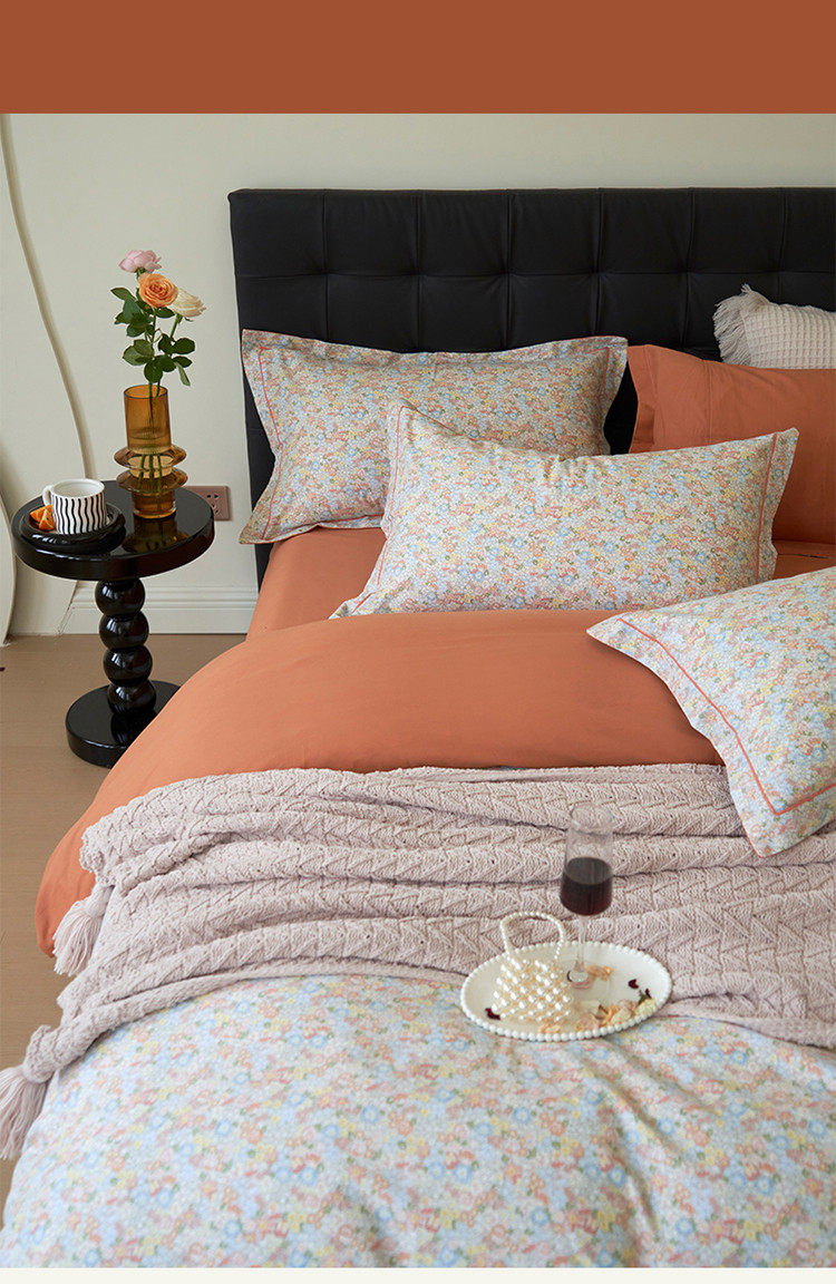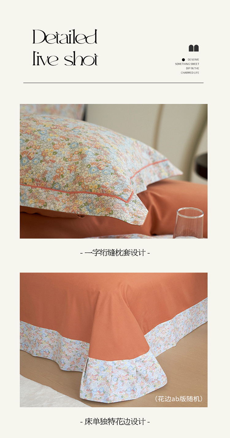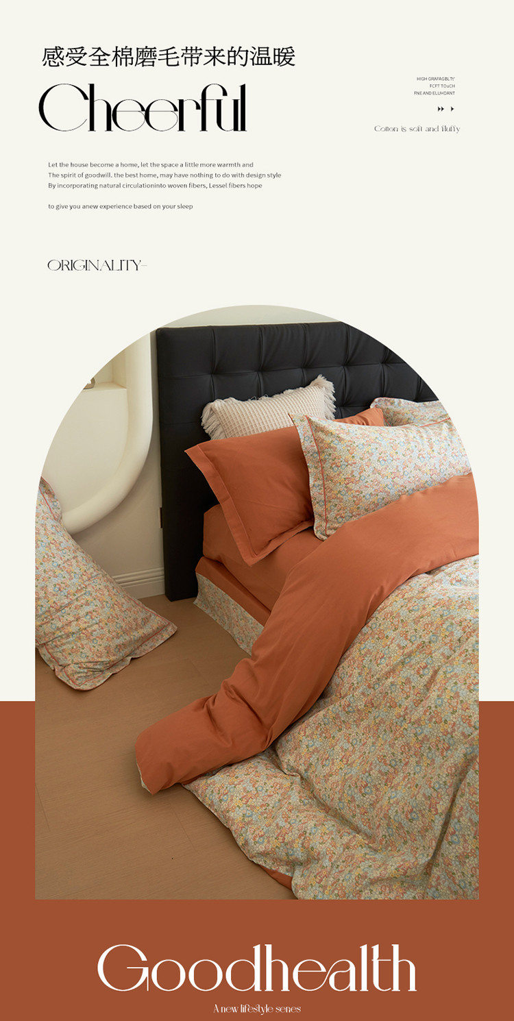 (总)嘉汀兰家居 2025新款长绒棉磨毛四件套—蔓莎,豆沙,灰色,桔色,绿色,香槟,紫色