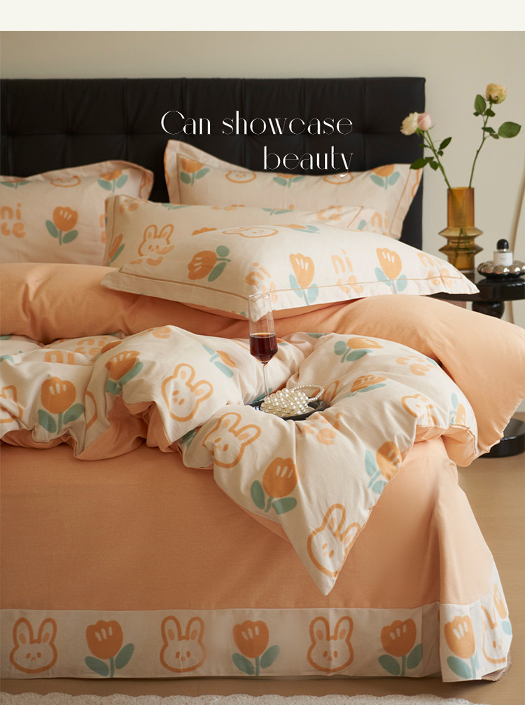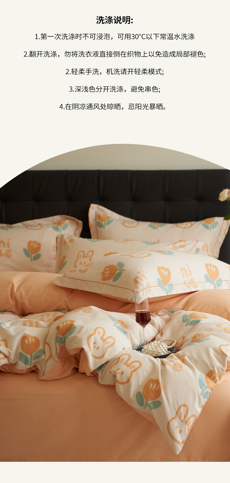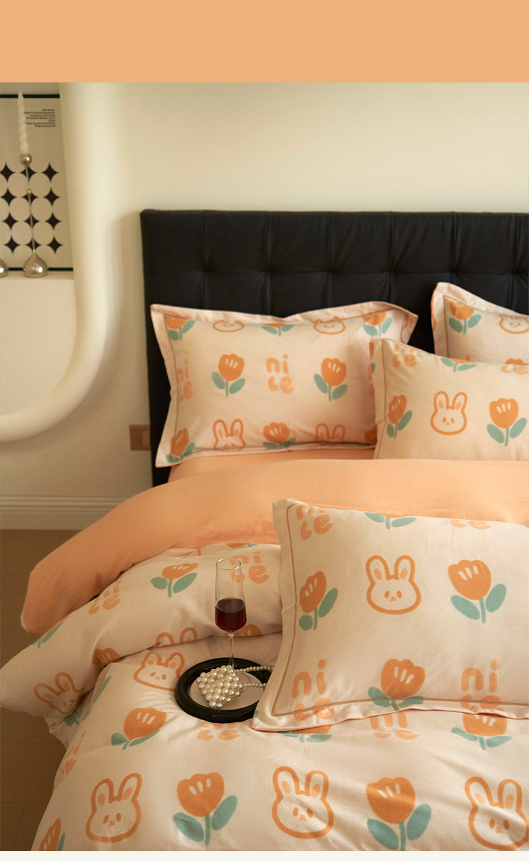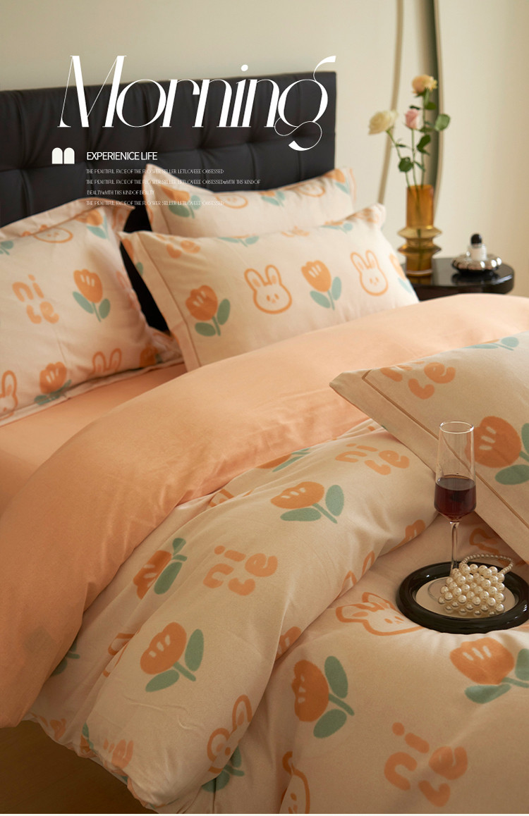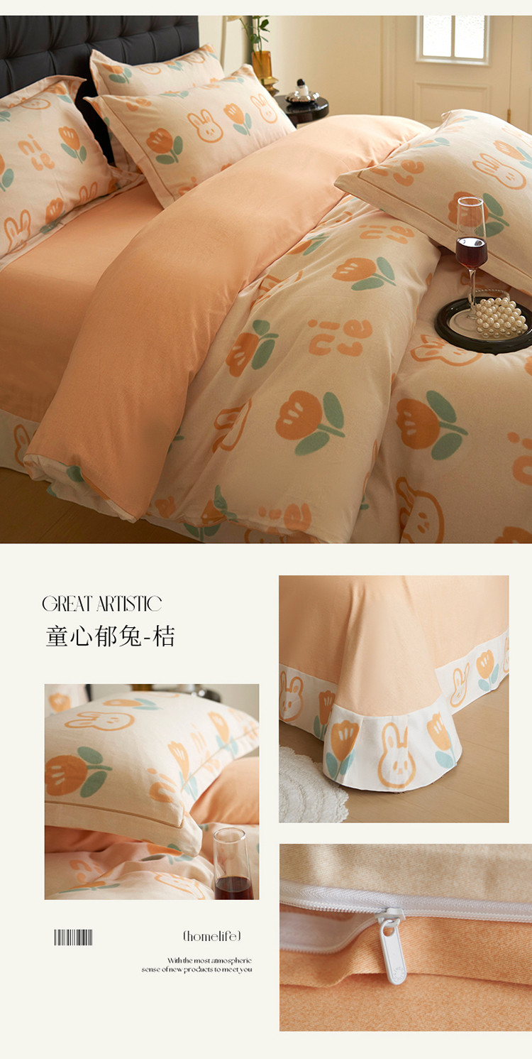 嘉汀兰家居 2023新款全棉磨毛印花系列四件套 童心郁兔-桔