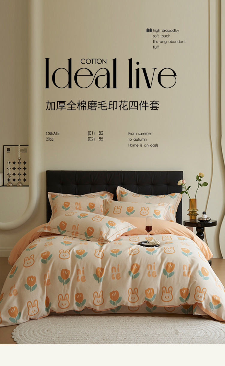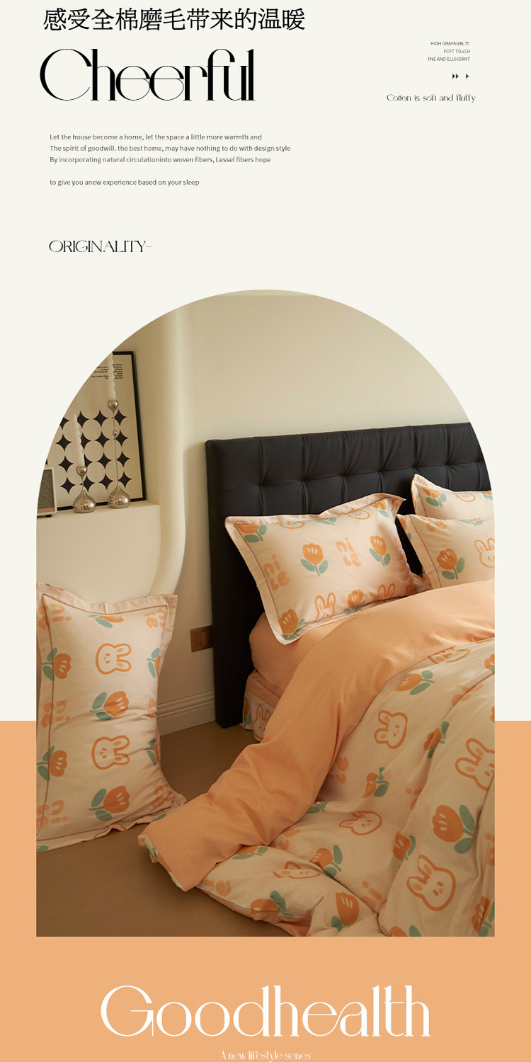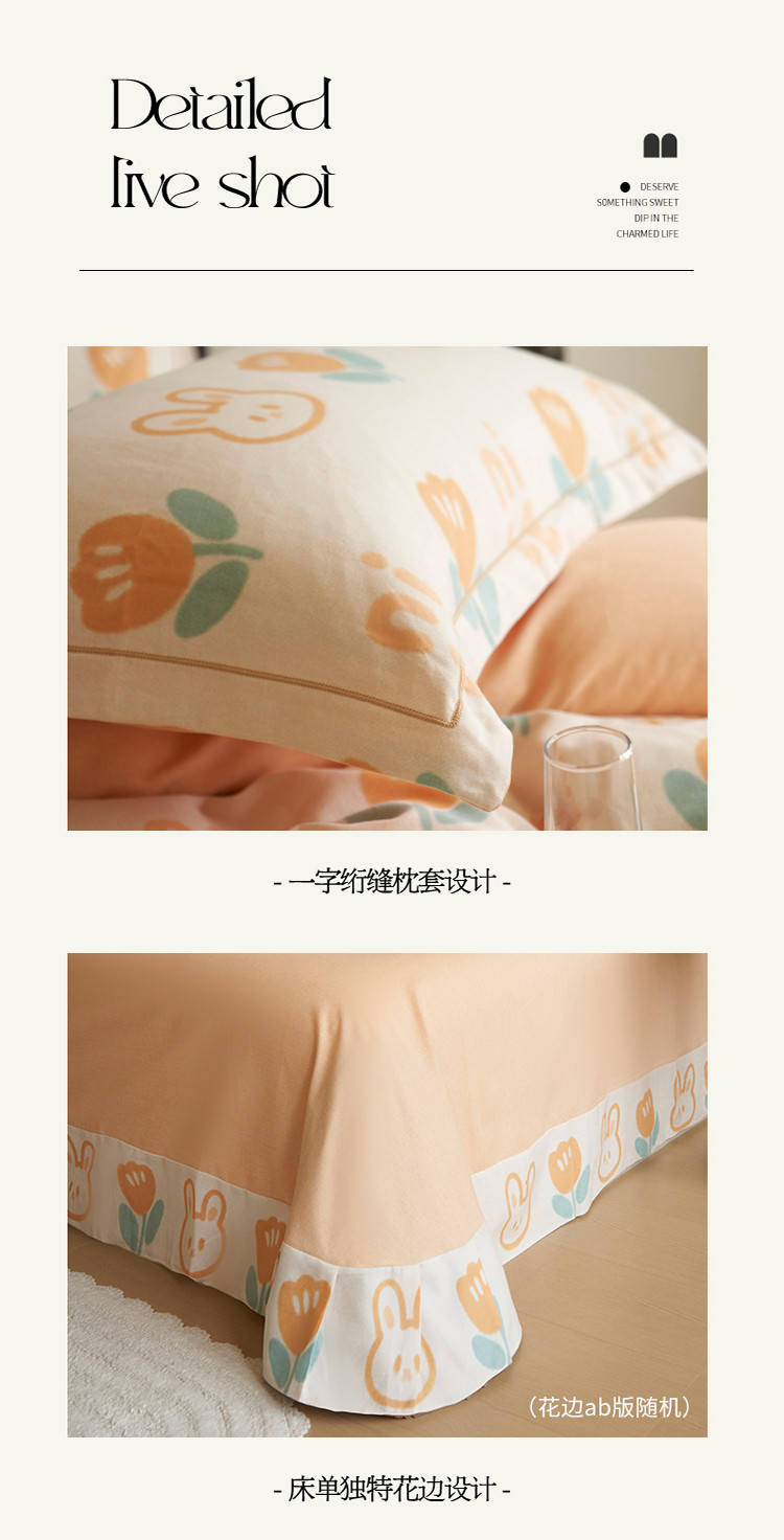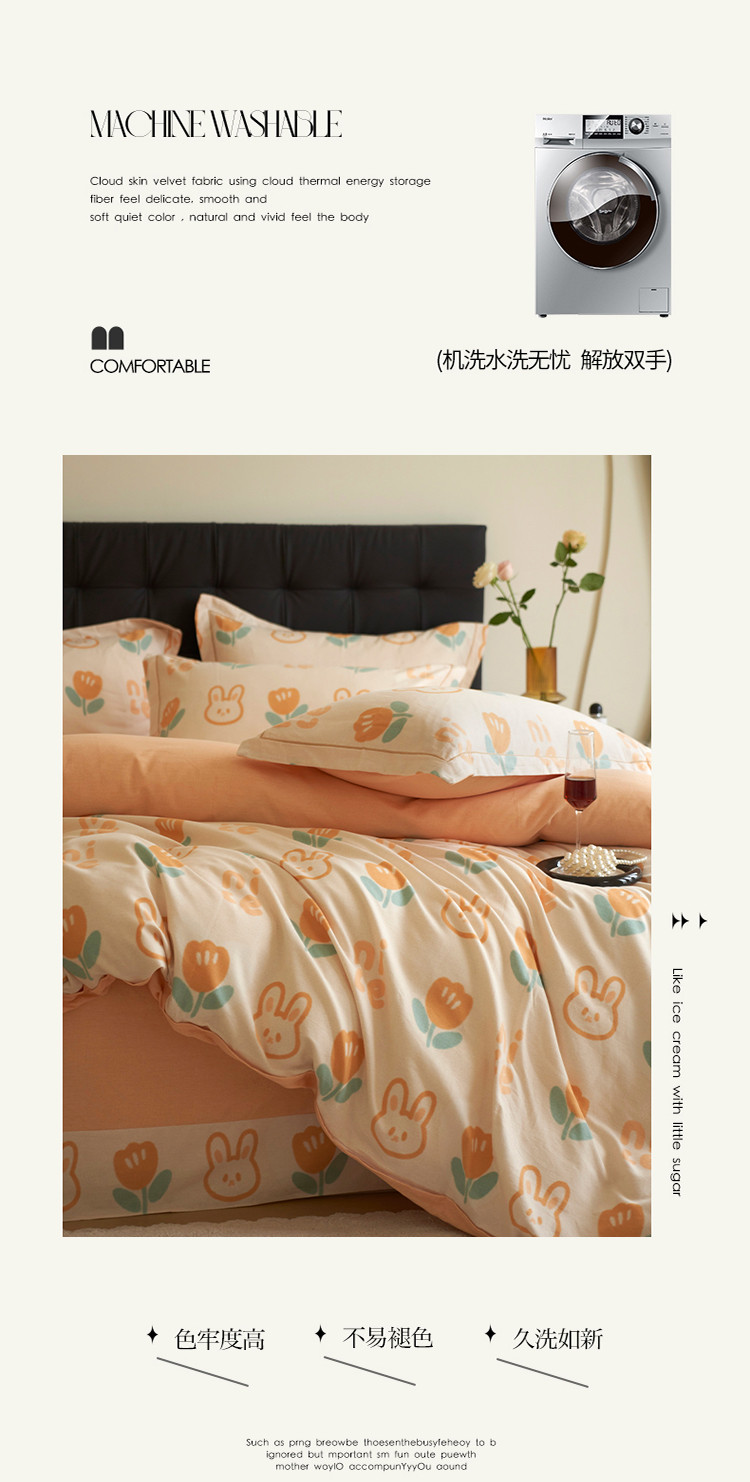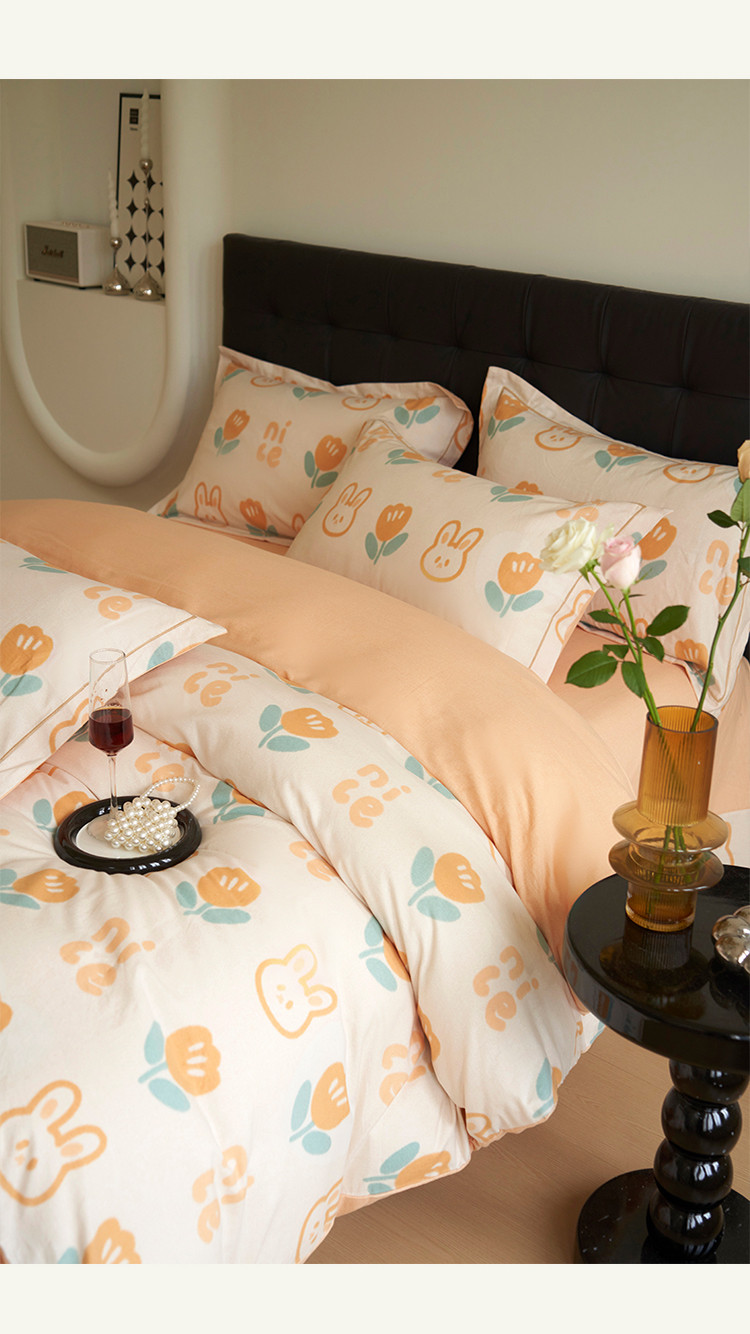 嘉汀兰家居 2023新款全棉磨毛印花系列四件套 童心郁兔-桔