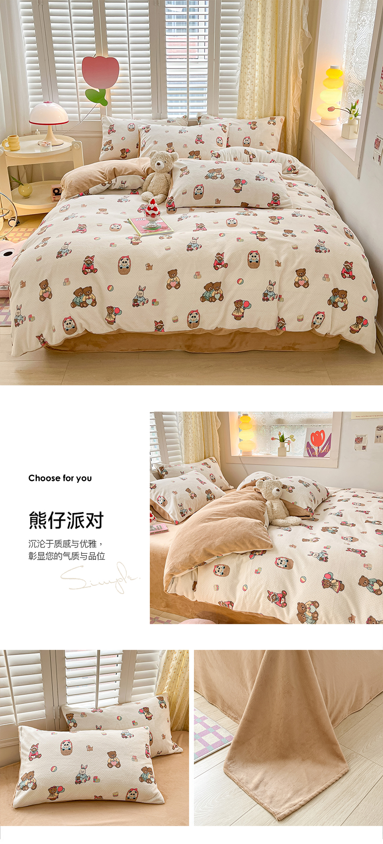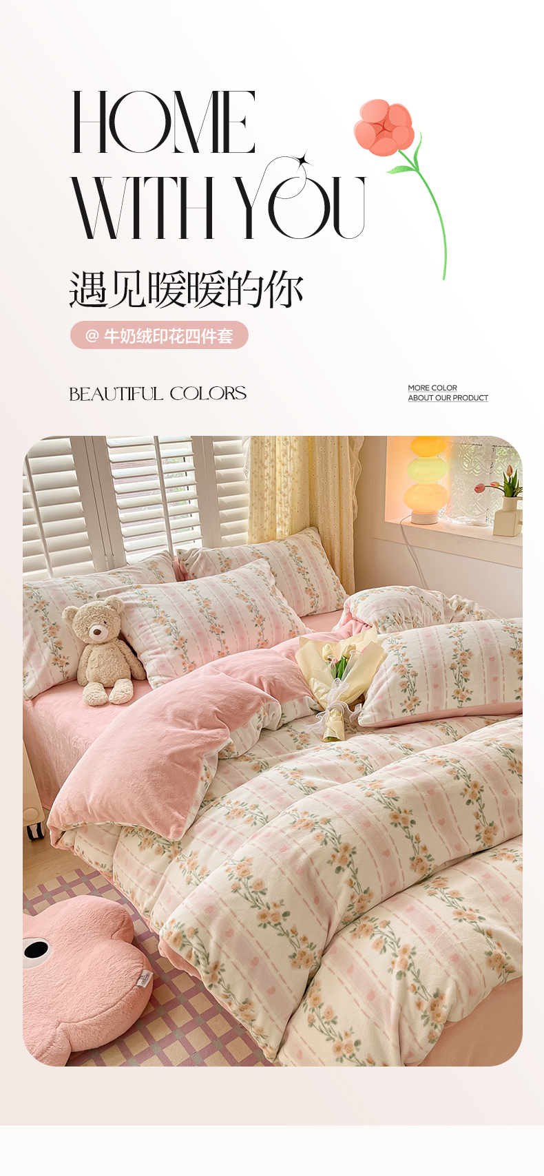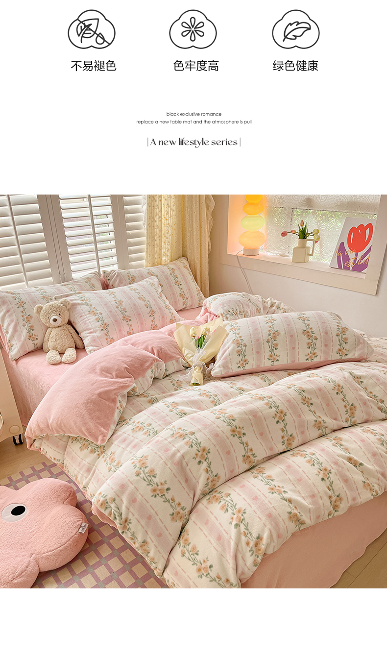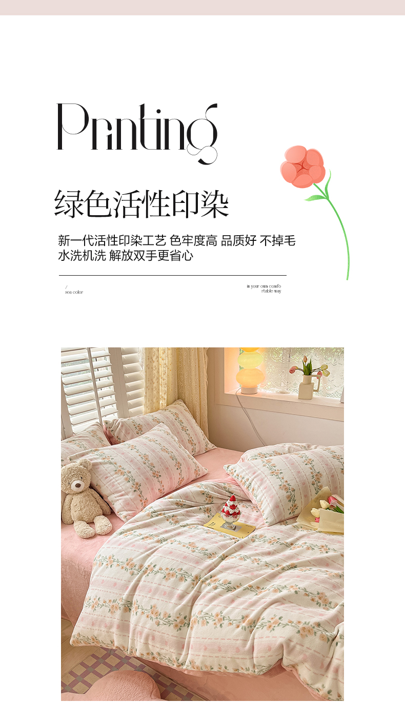(总)2024新款水洗棉小清新印花学生三件套(床笠床套款),爱心熊,粉郁盛开,花间兔,花语,恐龙乐园,仙草,紫郁盛开