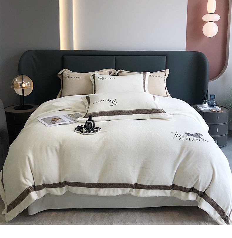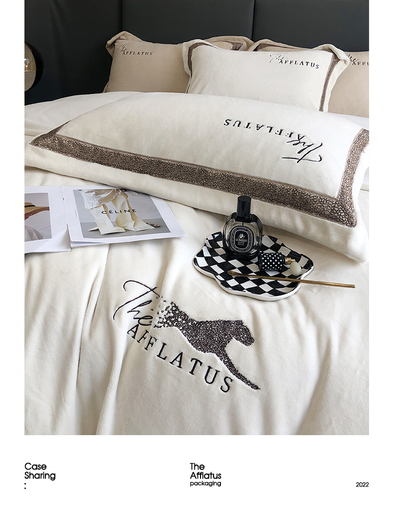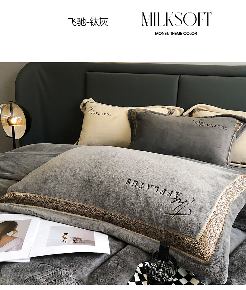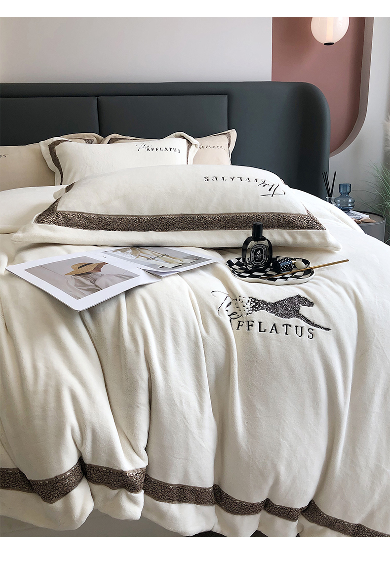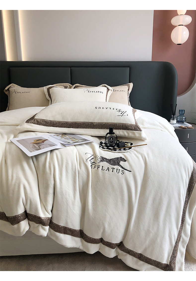 (总)瑞雪家居 2023新款260克牛奶绒刺绣宽边四件套飞驰