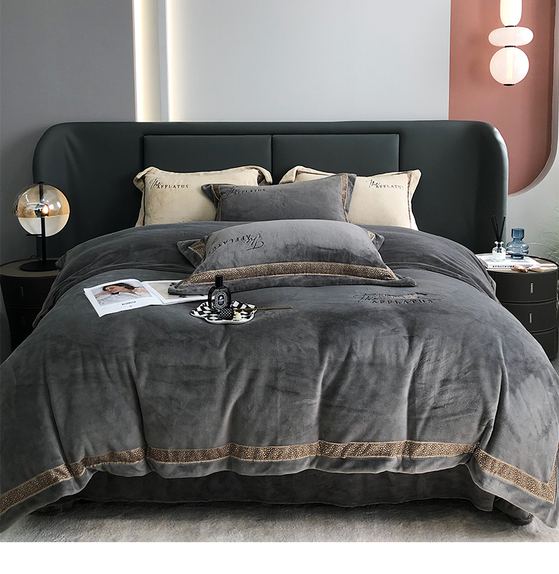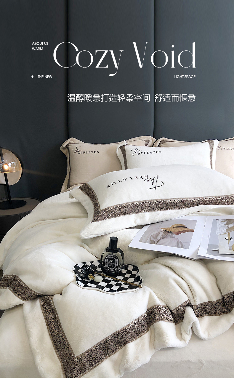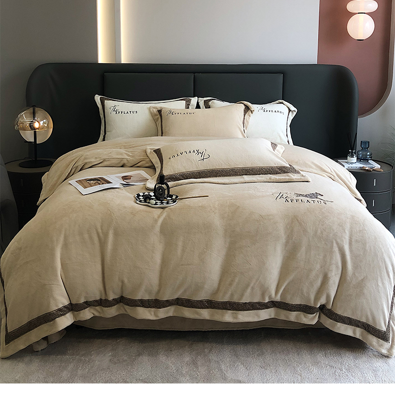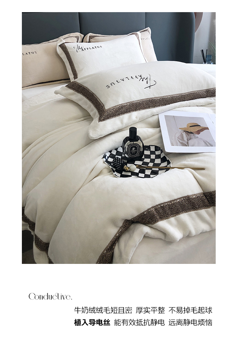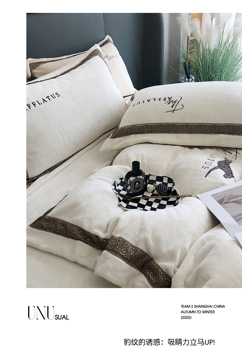 (总)瑞雪家居 2023新款260克牛奶绒刺绣宽边四件套飞驰