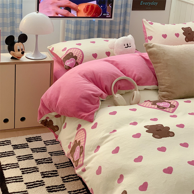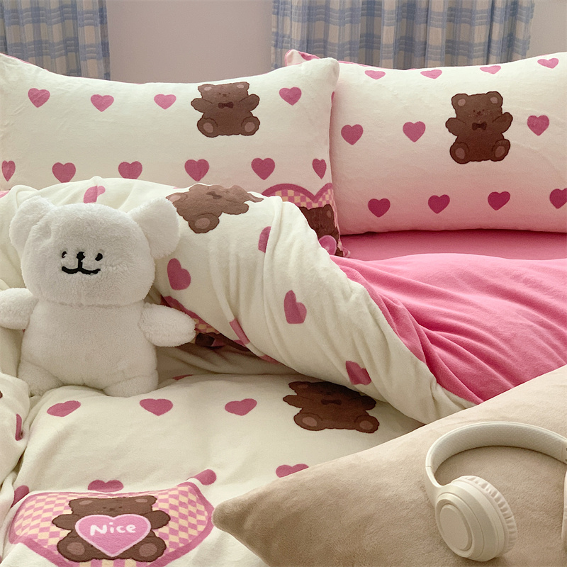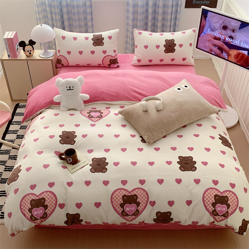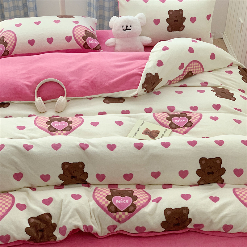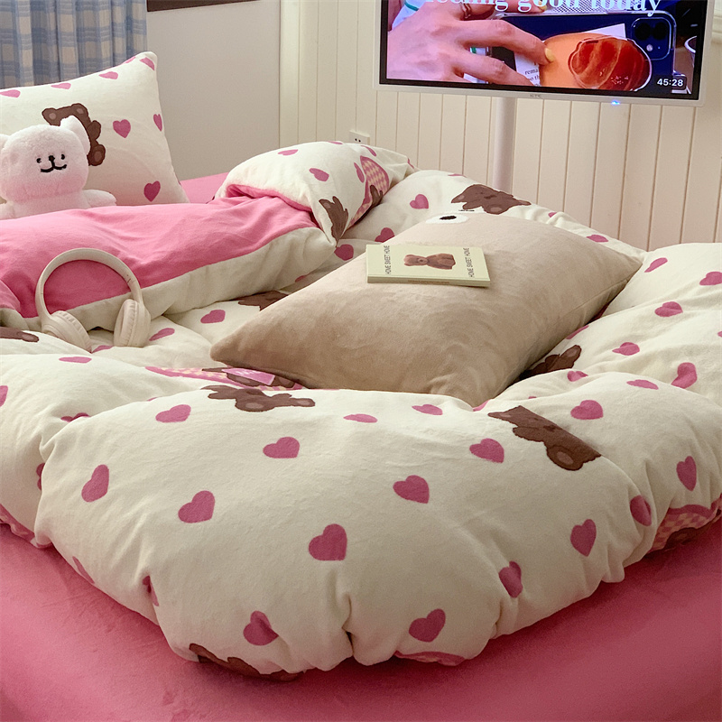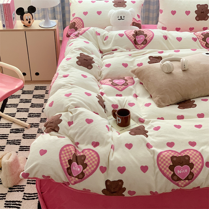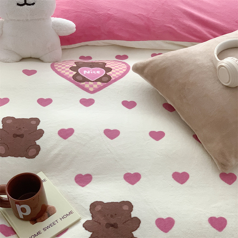 商品名称:星期八 2023新款210g双面牛奶绒印花四件套 爱心熊