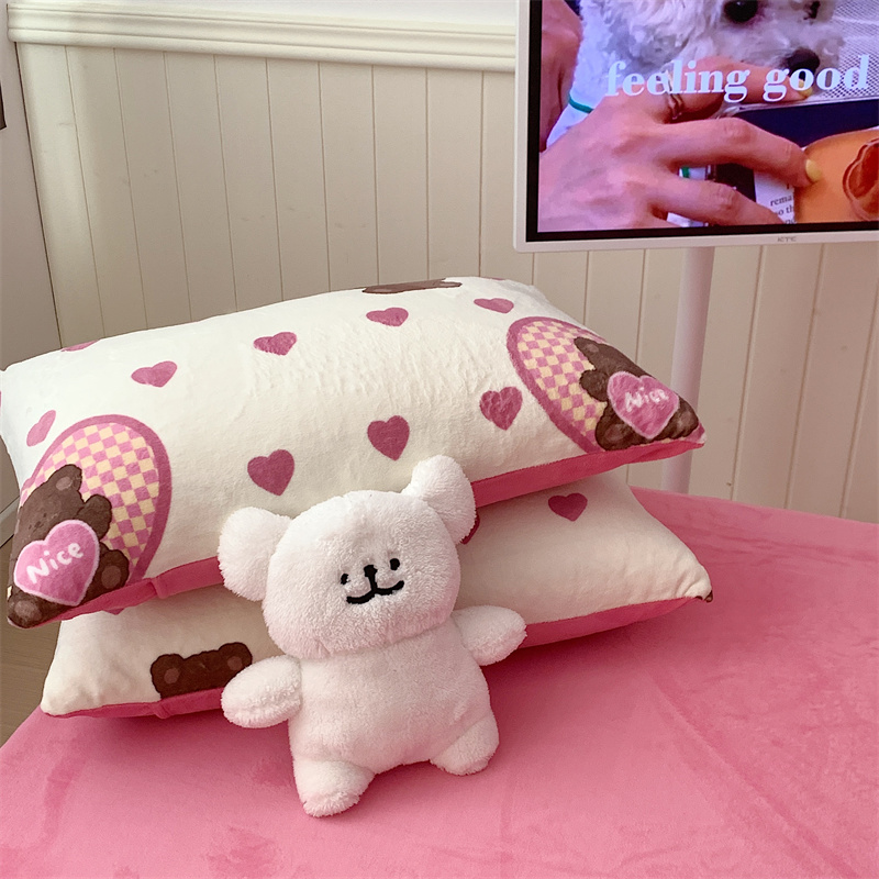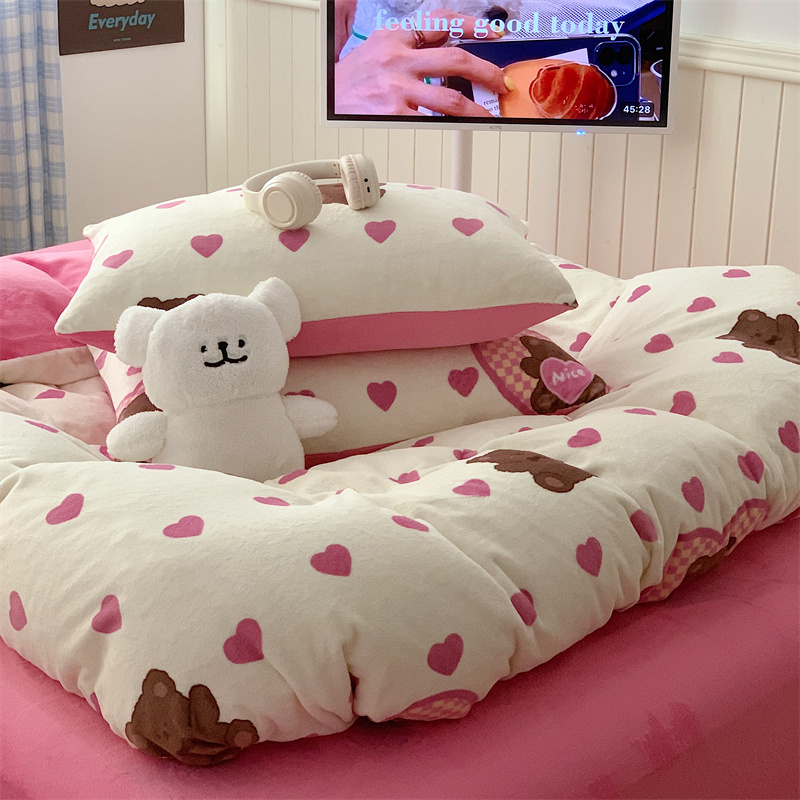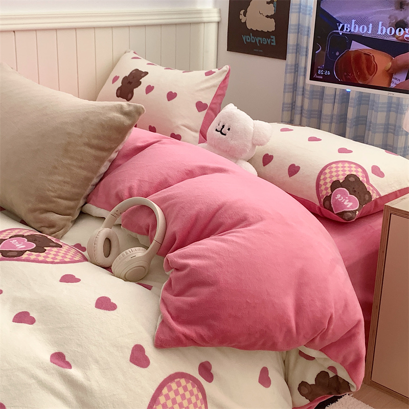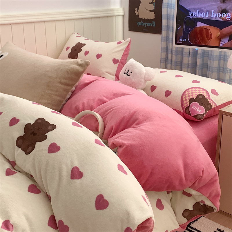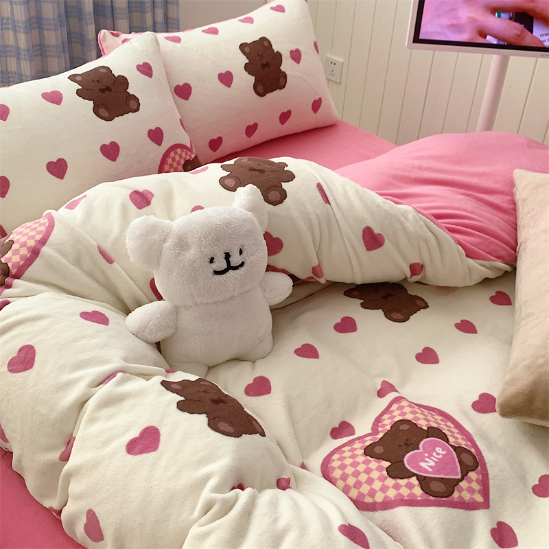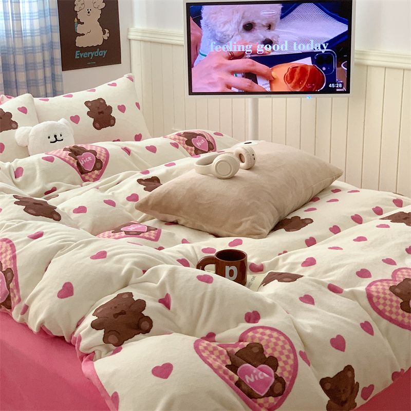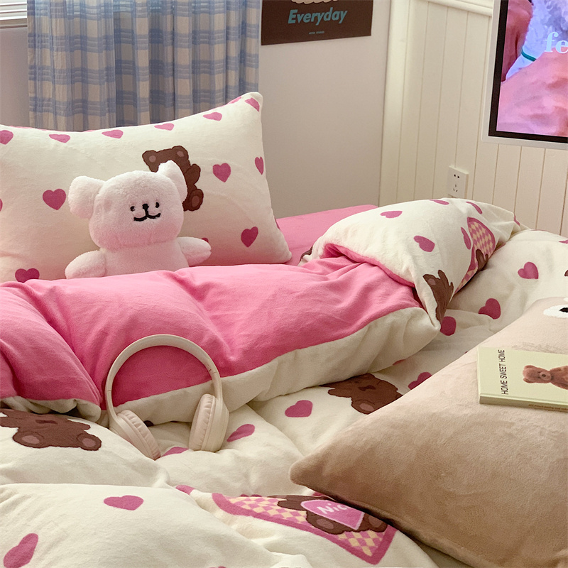 商品名称:星期八 2023新款210g双面牛奶绒印花四件套 爱心熊