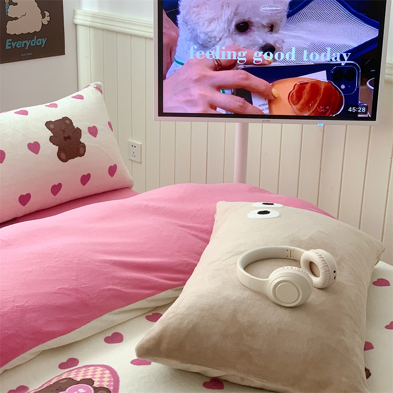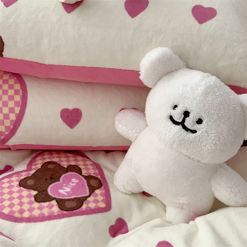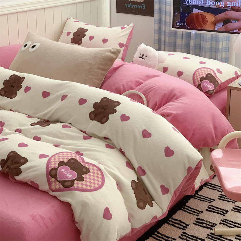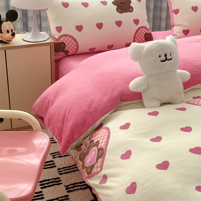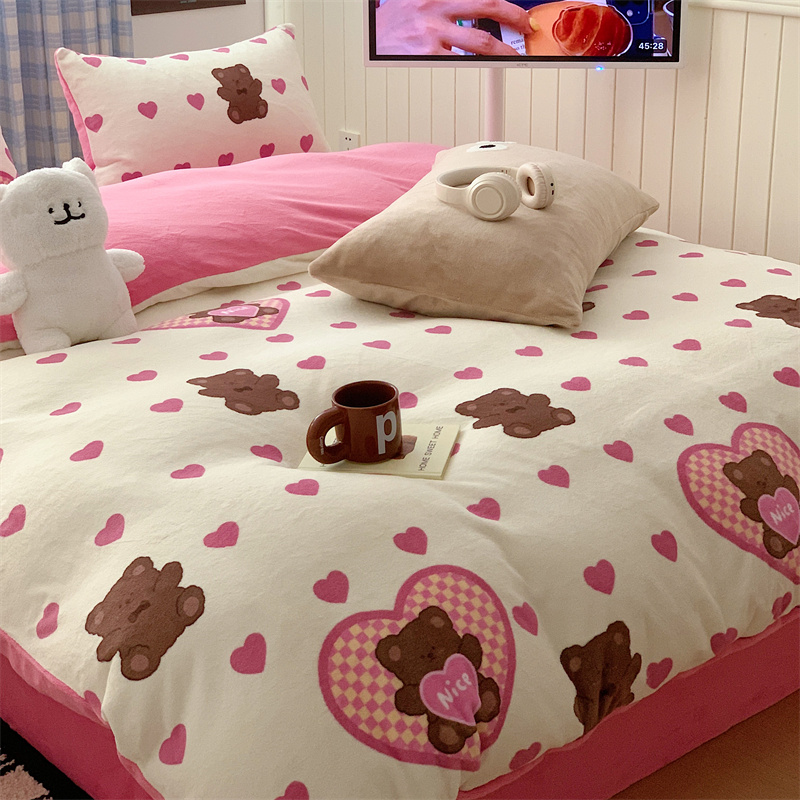 星期八 2023新款210g双面牛奶绒印花四件套 爱心熊