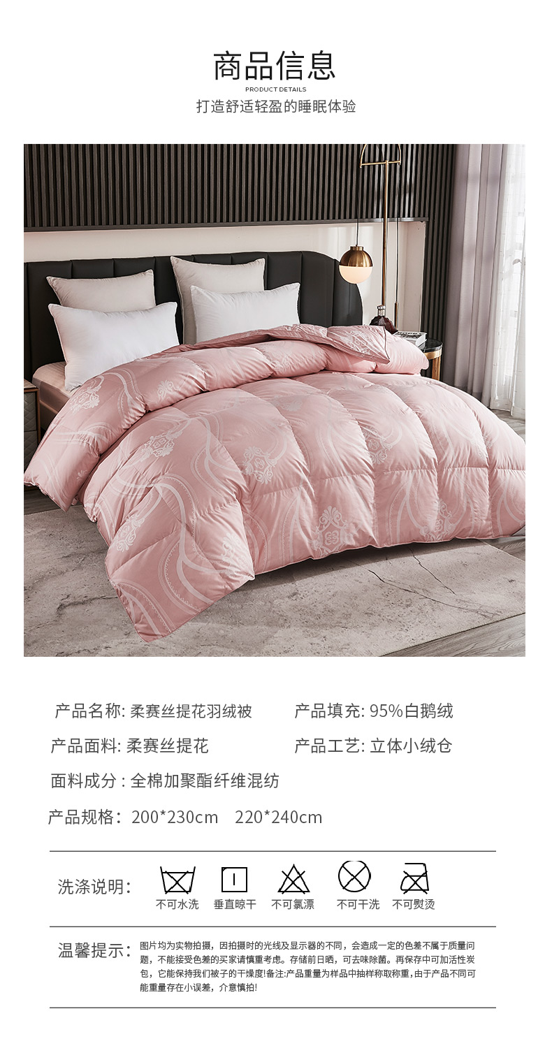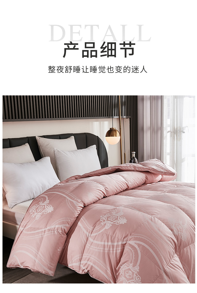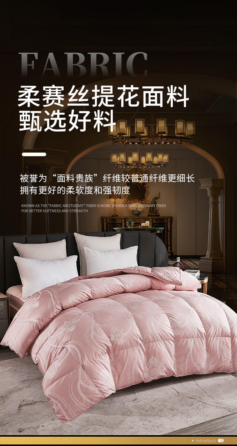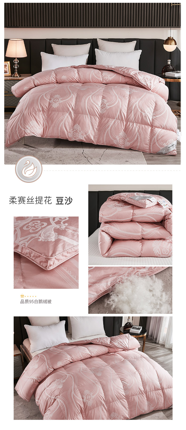 • 91家纺网 家纺一手货源 找家纺 总绒研羽绒 2025魅力人生真丝大提花鹅绒被羽绒被冬被被子,灰色,藕粉,香槟色