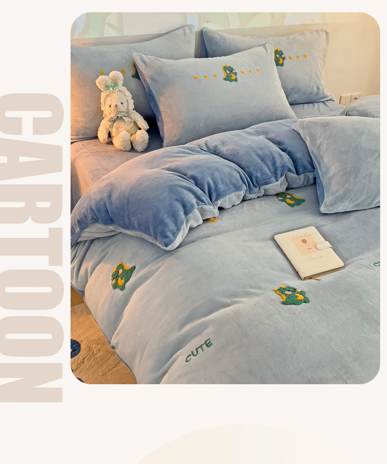 寐居家纺 2023毛巾绣牛奶绒四件套 萌宠恐龙-蓝