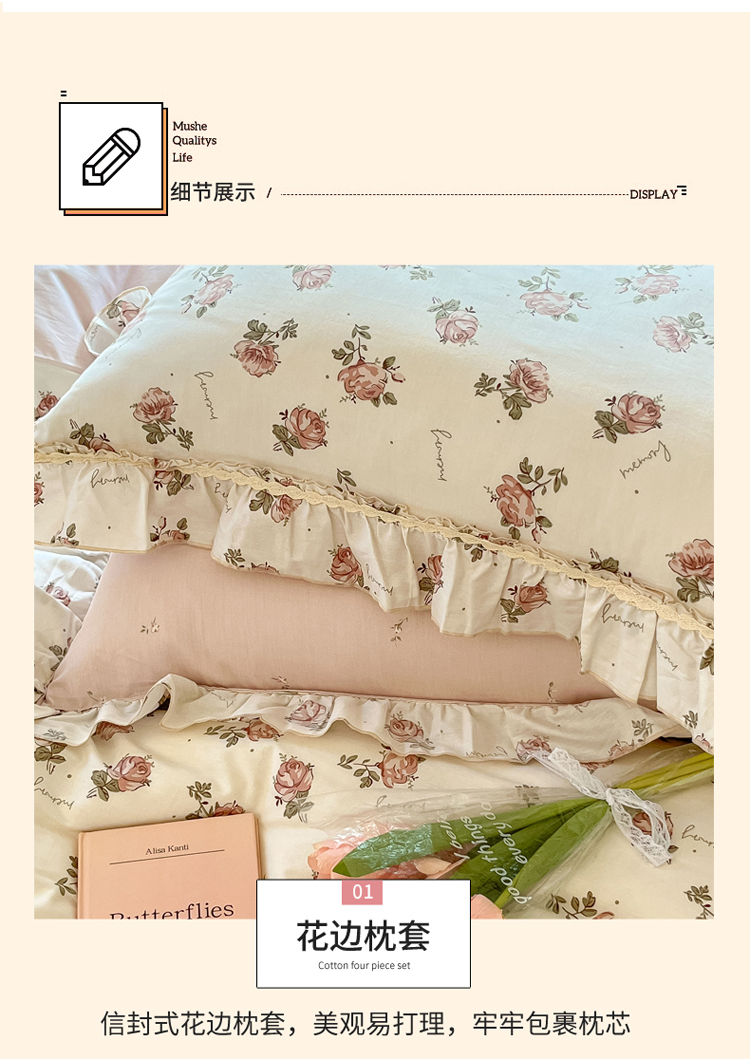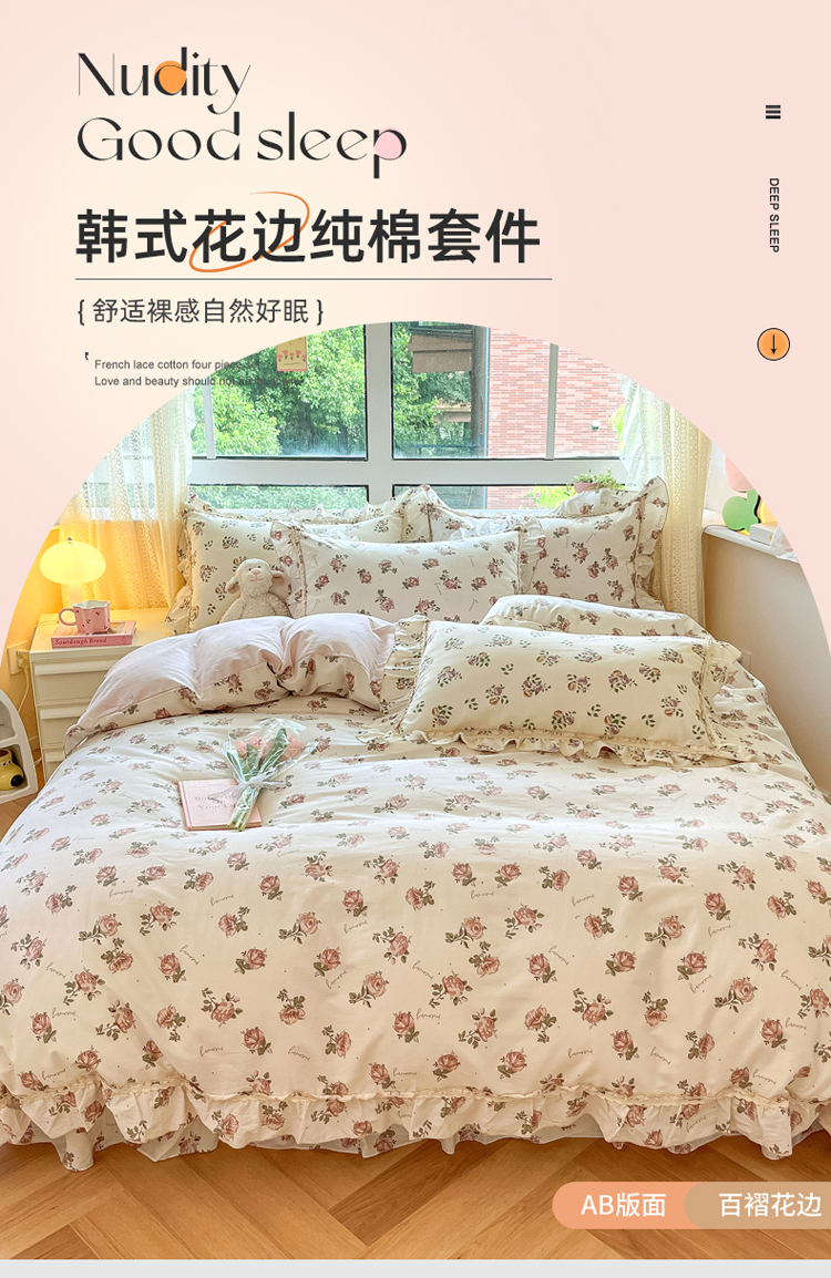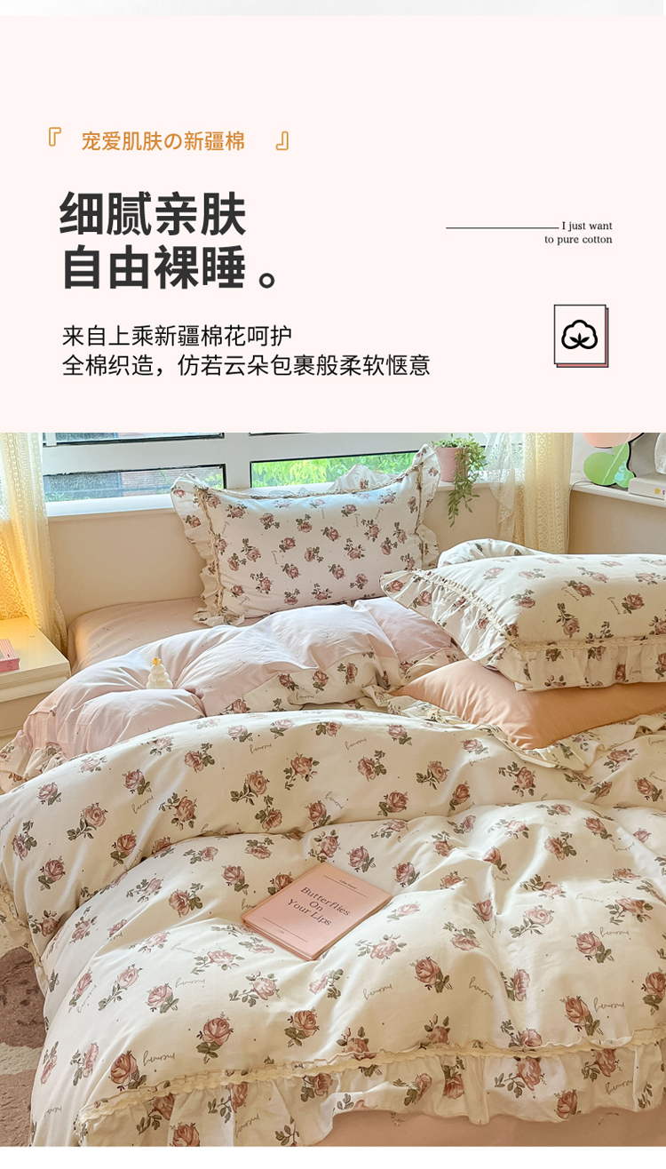 (总)艾唯希2025新款全棉小香风工艺四件套纯棉小花边碎花被套韩式公主风,初朵,春漾,漫丁蔷薇,觅秋,密玲花语,慕归十里,小青藤-米,小樱-咖,雅集,雅蔓花语,樱花,悠然雅居-粉