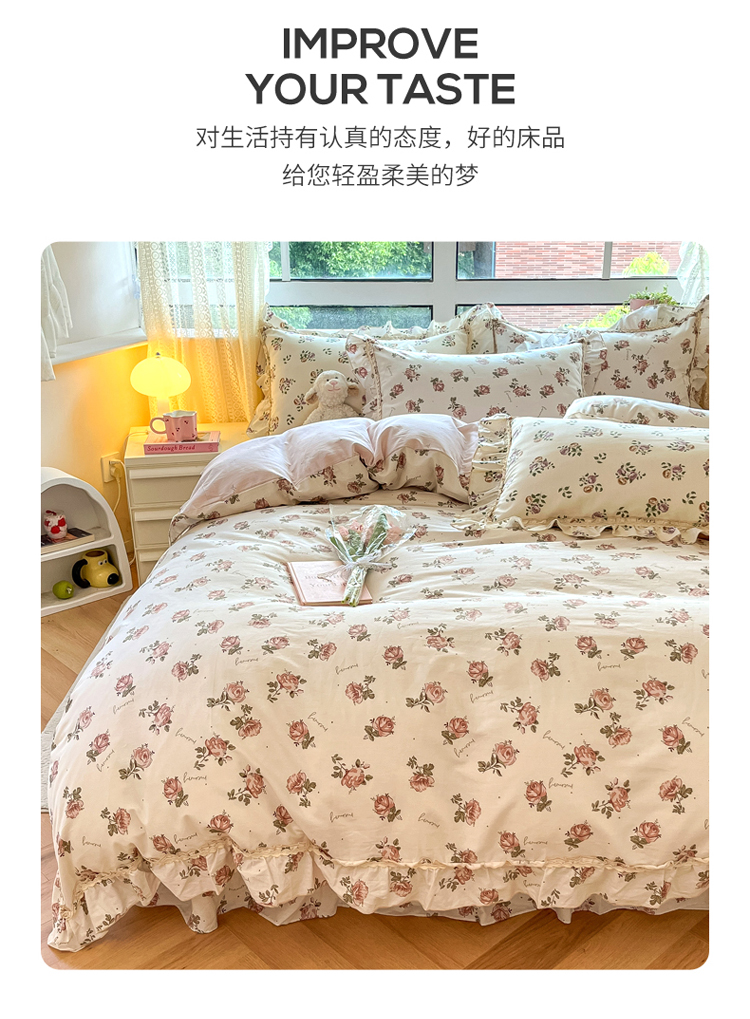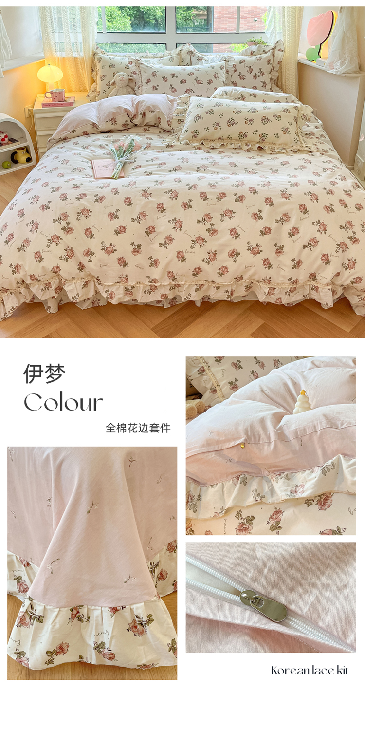 商品名称:艾唯希家纺 2024新款全棉韩式花边四件套纯棉公主风田园系列 伊梦