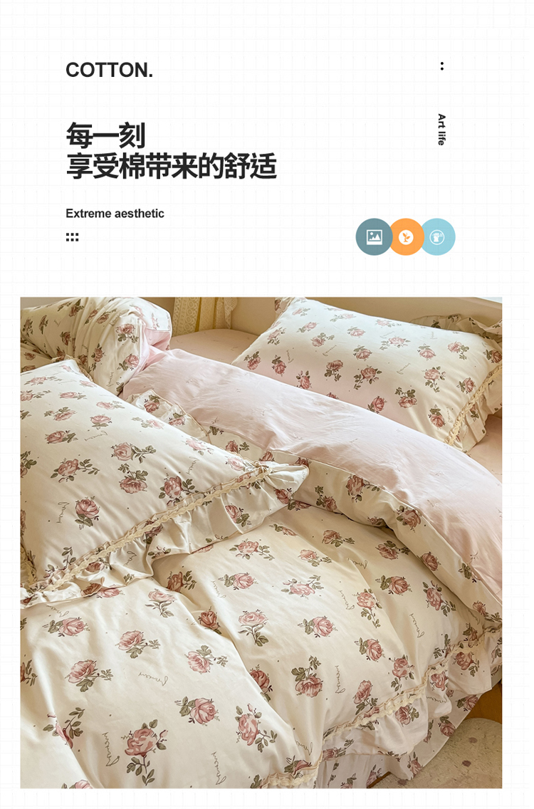 (总)艾唯希家纺 2025新款全棉复古棉麻工艺四件套纯棉-晚风玫瑰系列,晚风玫瑰-淡粉,晚风玫瑰-原麻色