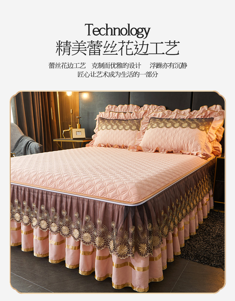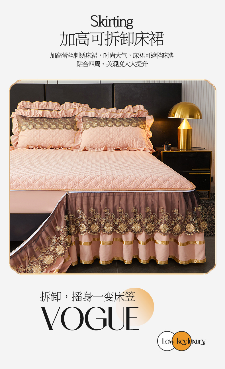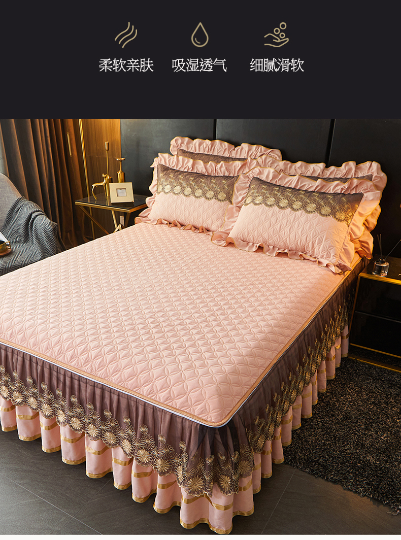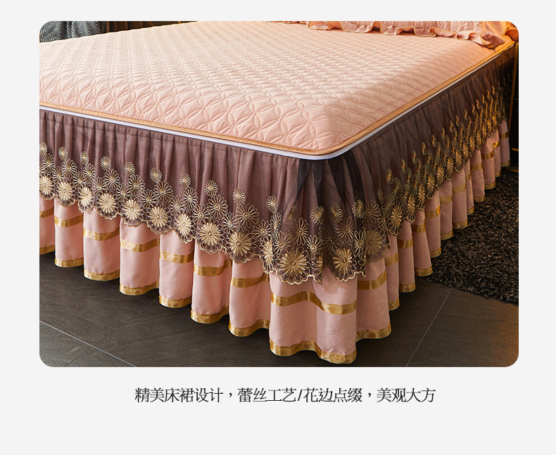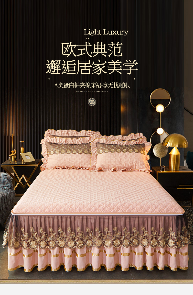 商品名称:罗艺轩 2024新款A类蛋白棉夹棉床裙-品味人生 品味人生-樱花粉