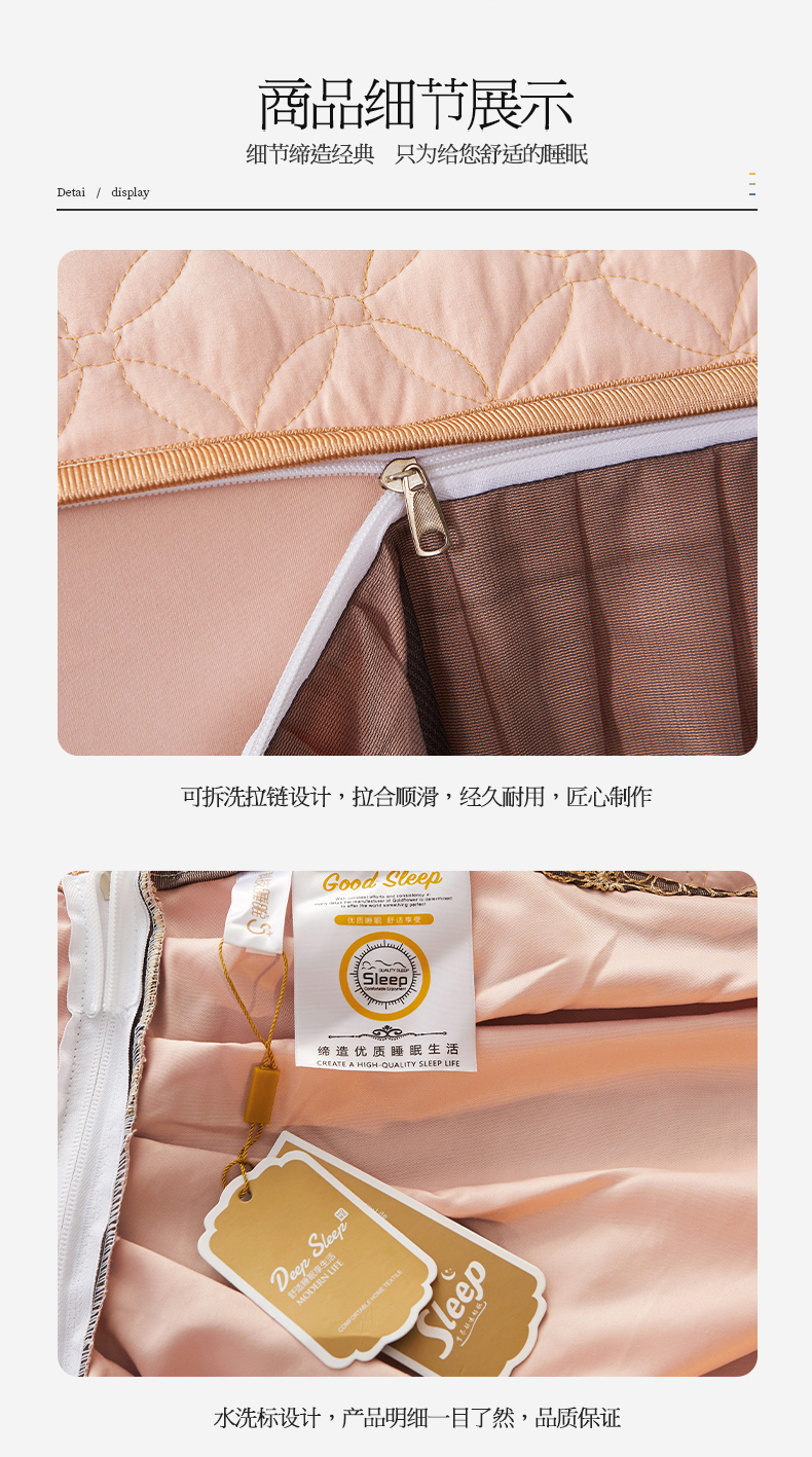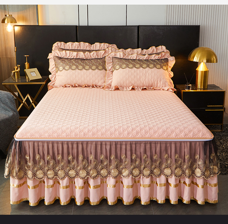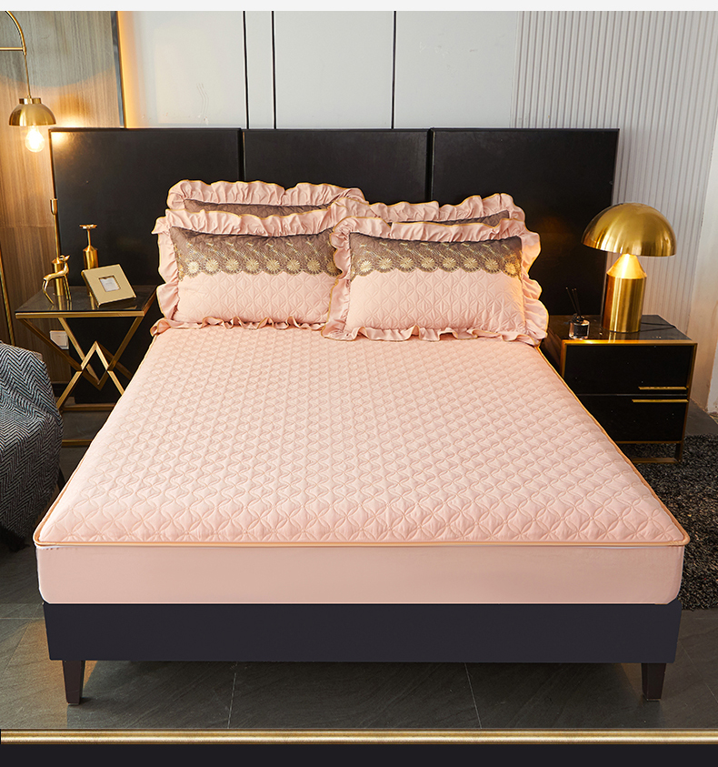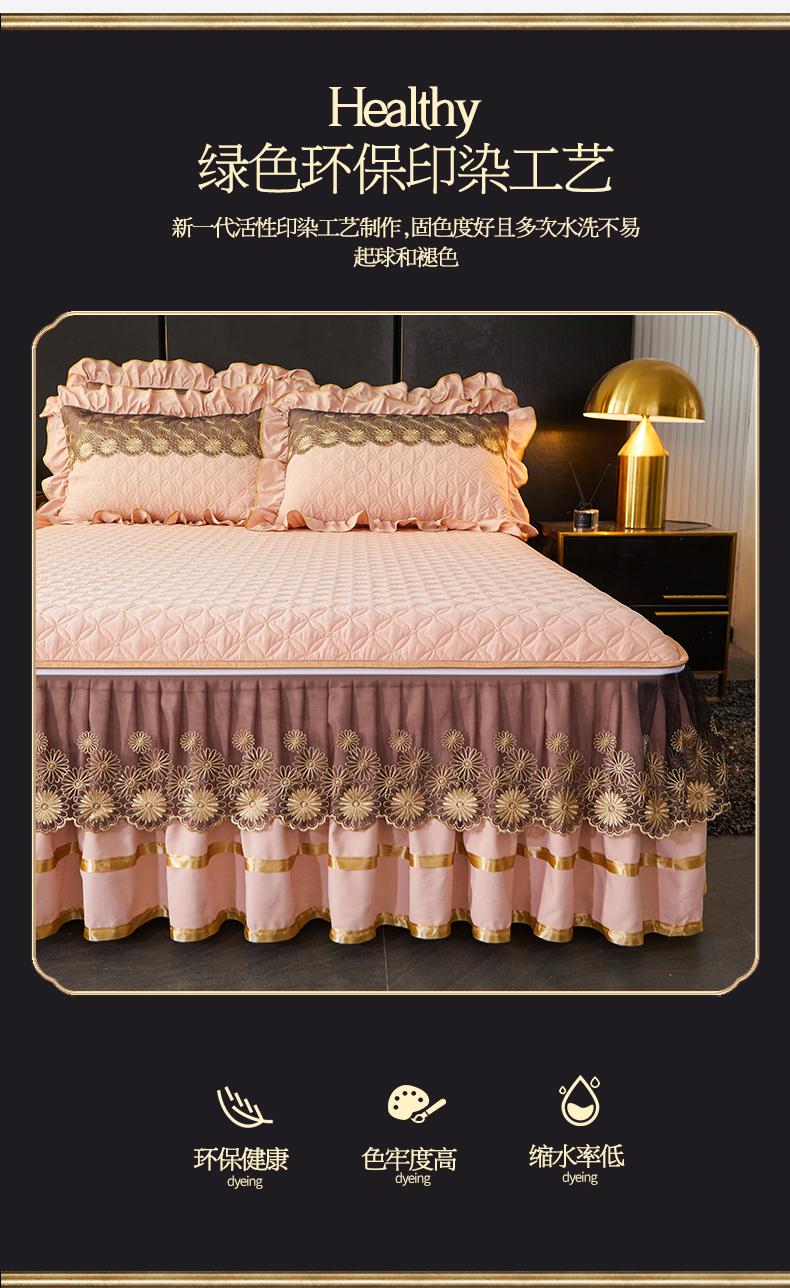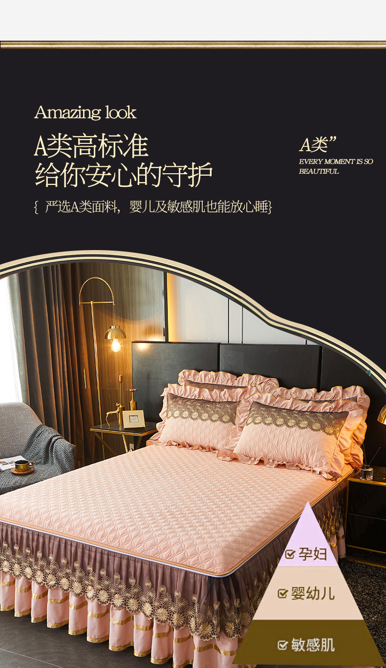商品名称:罗艺轩 2024新款A类蛋白棉夹棉床裙-品味人生 品味人生-樱花粉