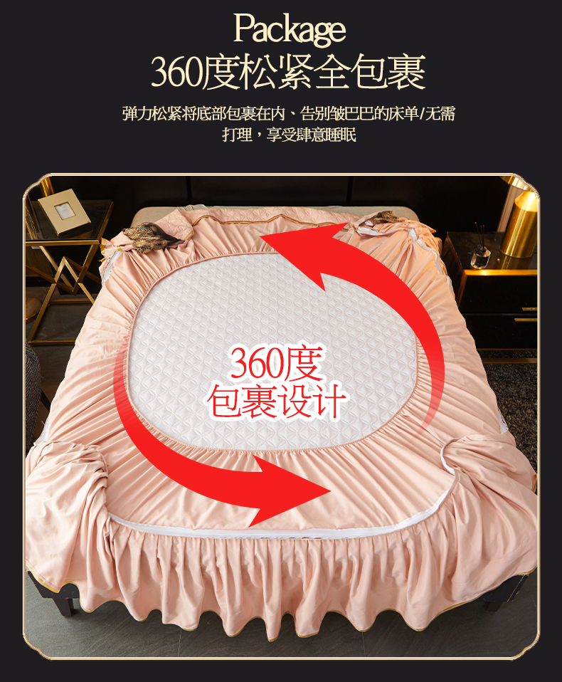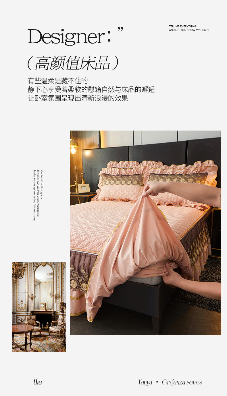 罗艺轩 2024新款A类蛋白棉夹棉床裙-品味人生 品味人生-樱花粉