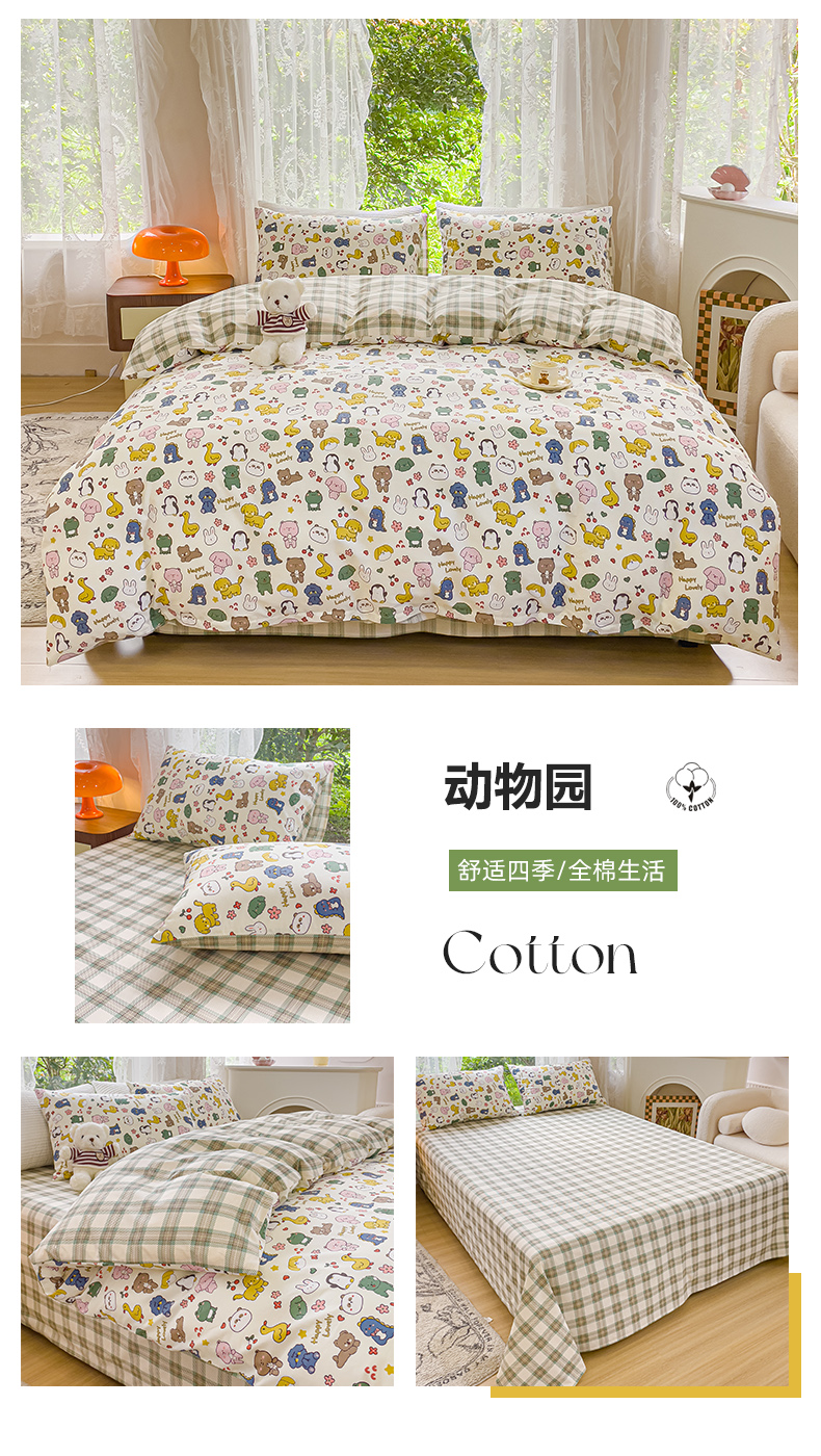 商品名称:感遇家纺 2023新款全棉印花四件套 动物园