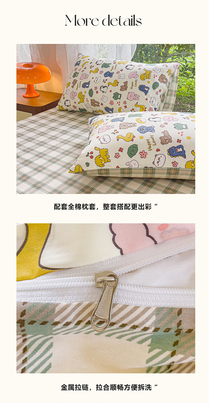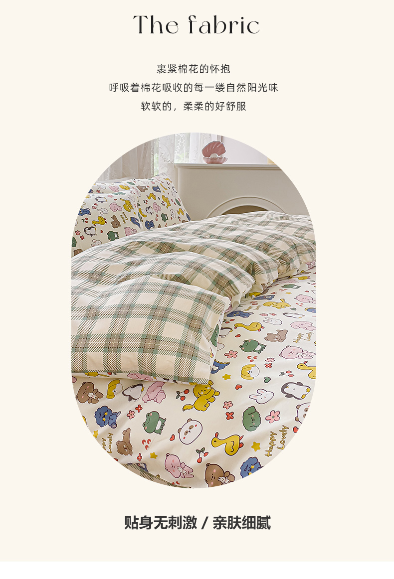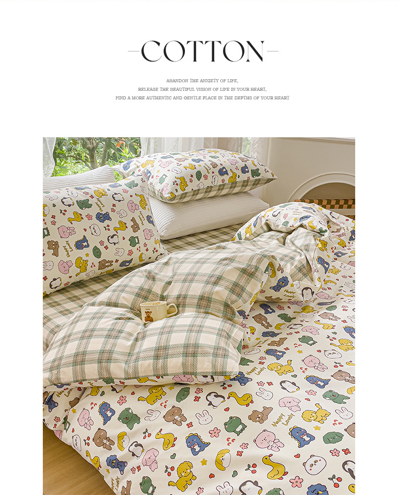 (总)感遇家纺 2025新款小清新甜系全棉四件套,百丽兔,波点小女孩,点点小狗,复古樱桃,格子草莓,格子樱桃,花间牧歌,灰条猫咪,奶绿,宁夏,森林小熊猫,甜心波点