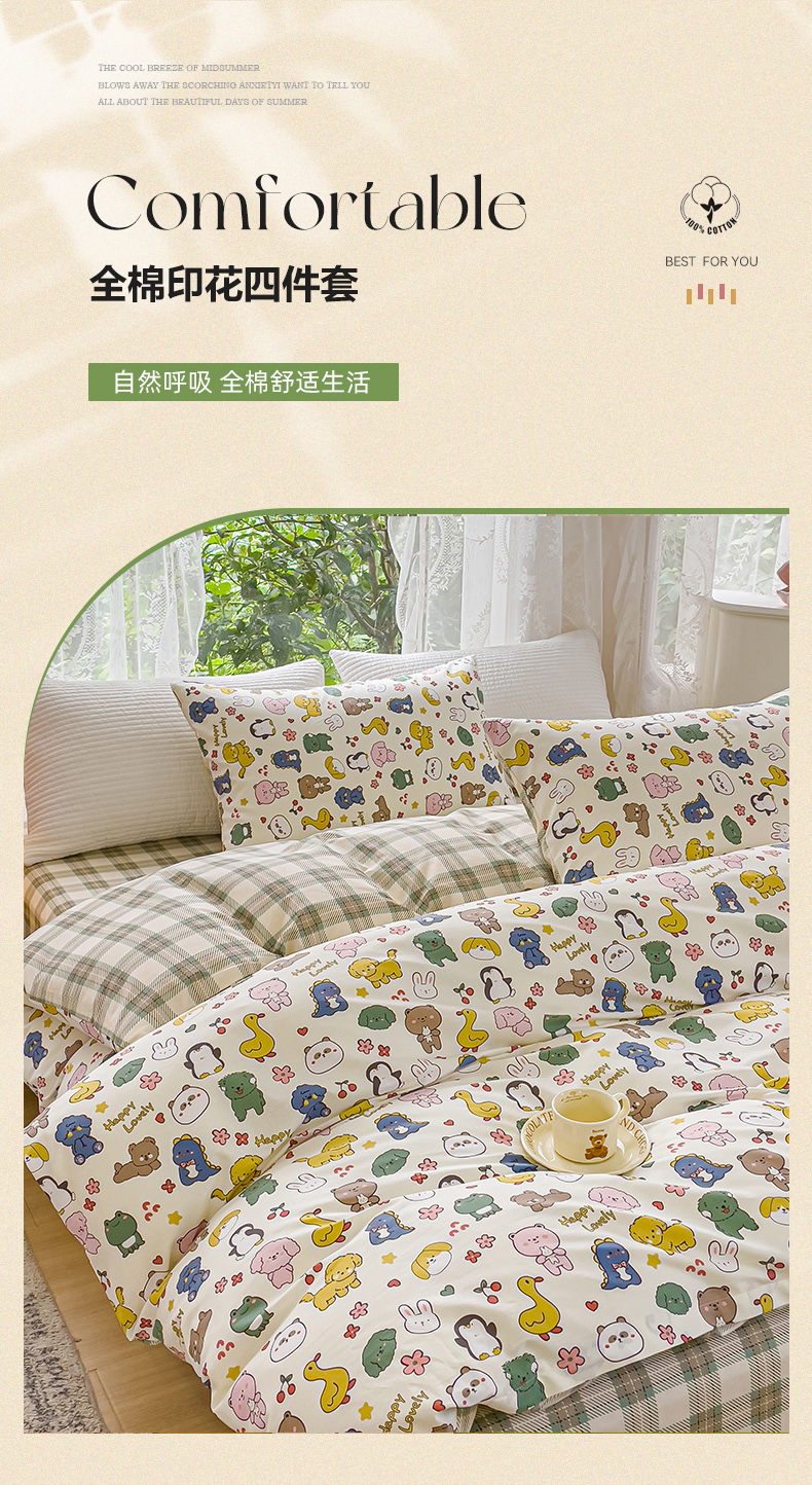 感遇家纺 2023新款全棉印花四件套 动物园