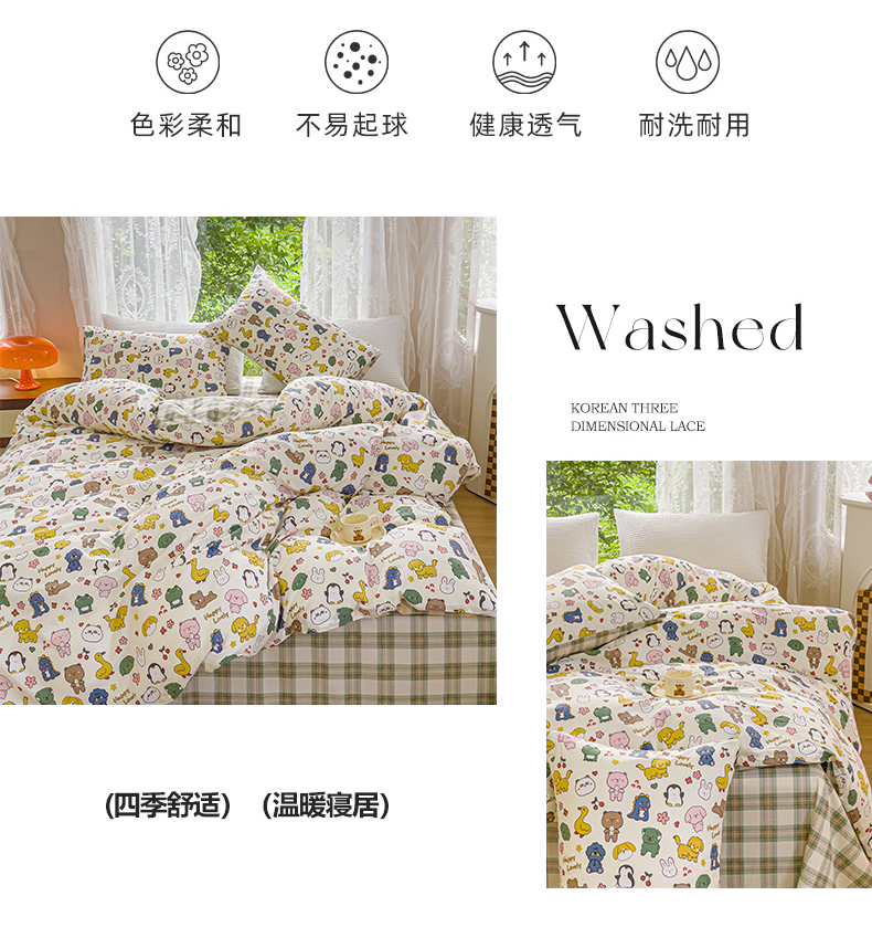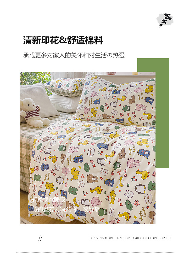 (总)感遇家纺 2021新款小清新卡通系列四件套,饼干森林,快乐星球,长颈鹿