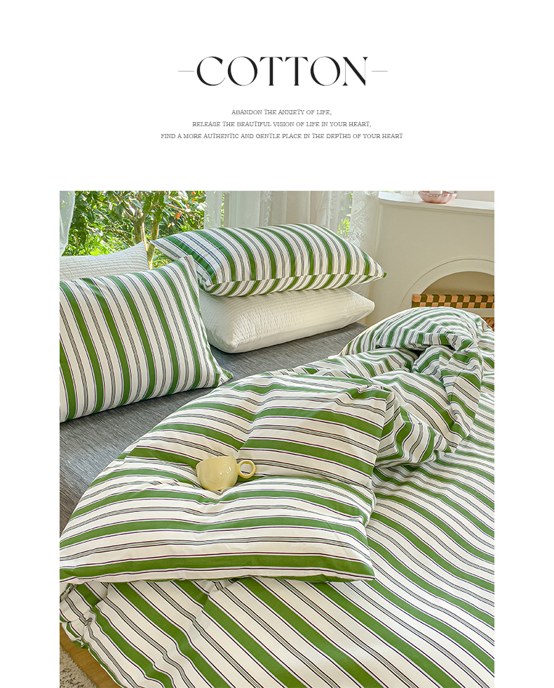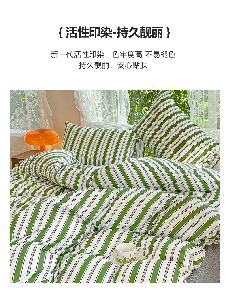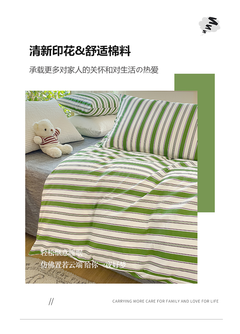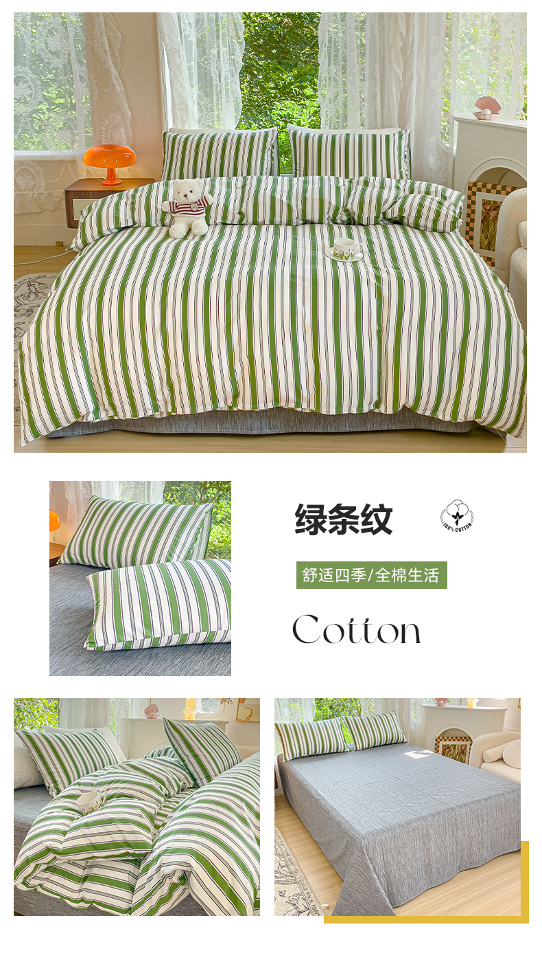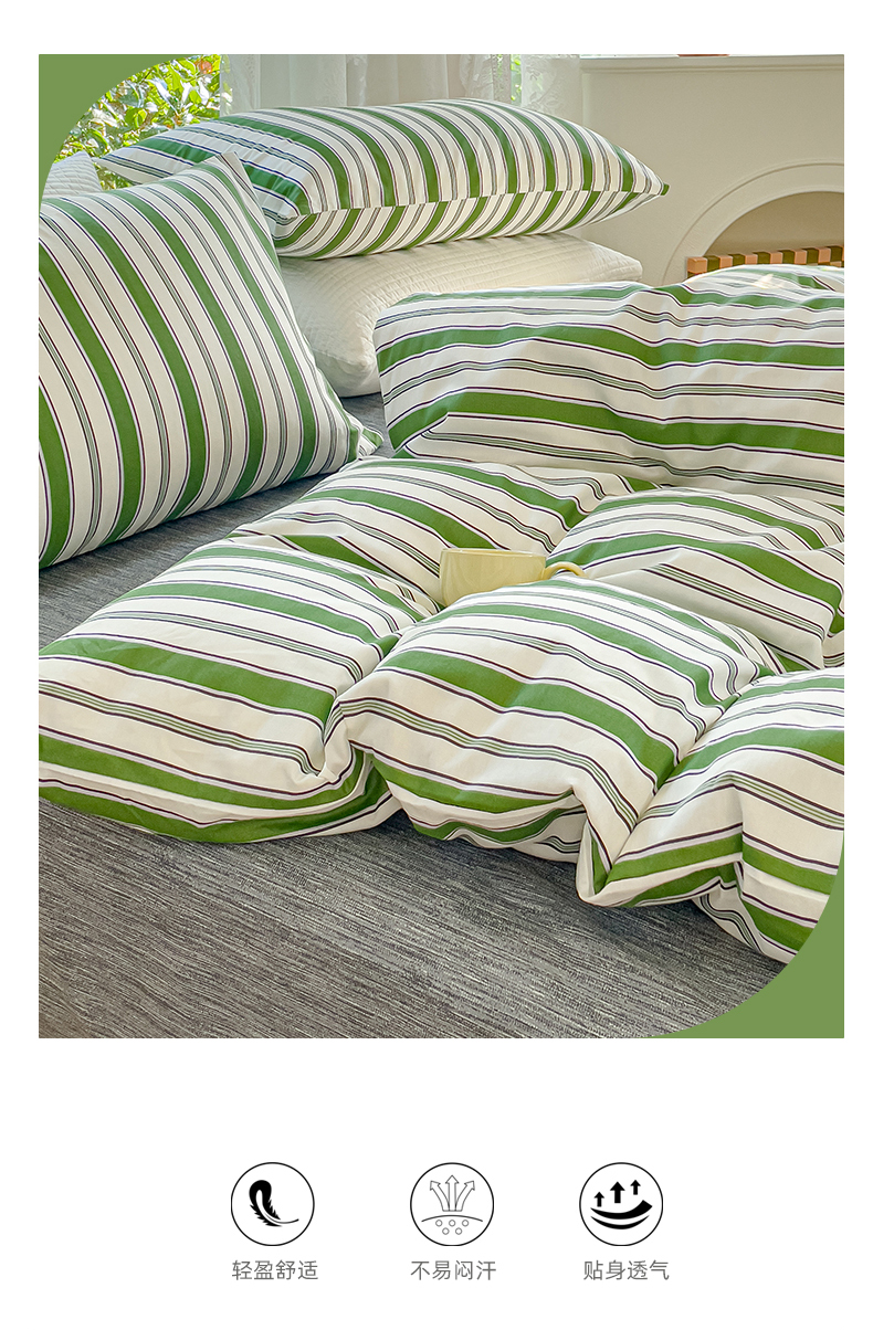 商品名称:感遇家纺 2023新款全棉印花四件套 绿条纹