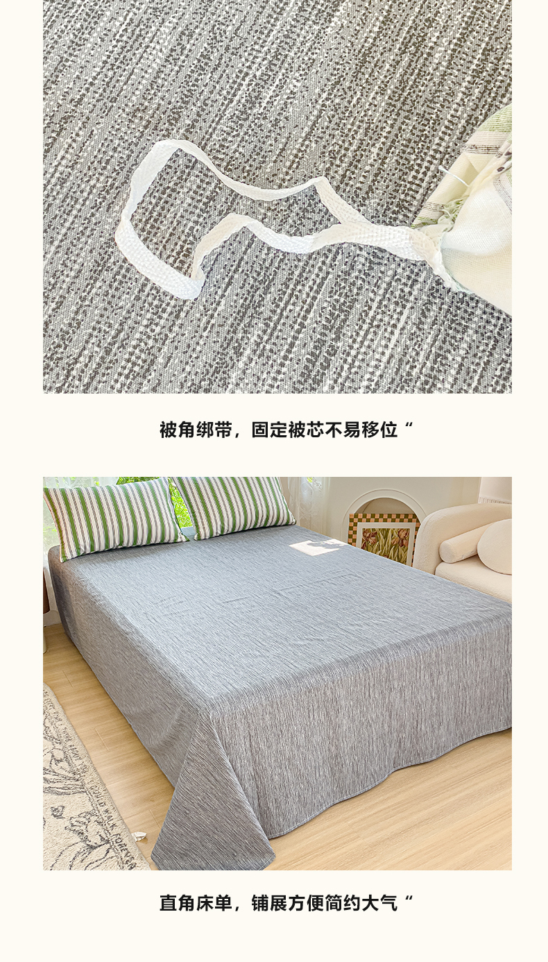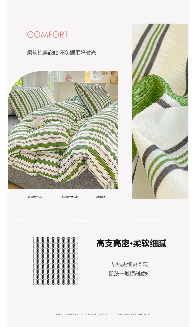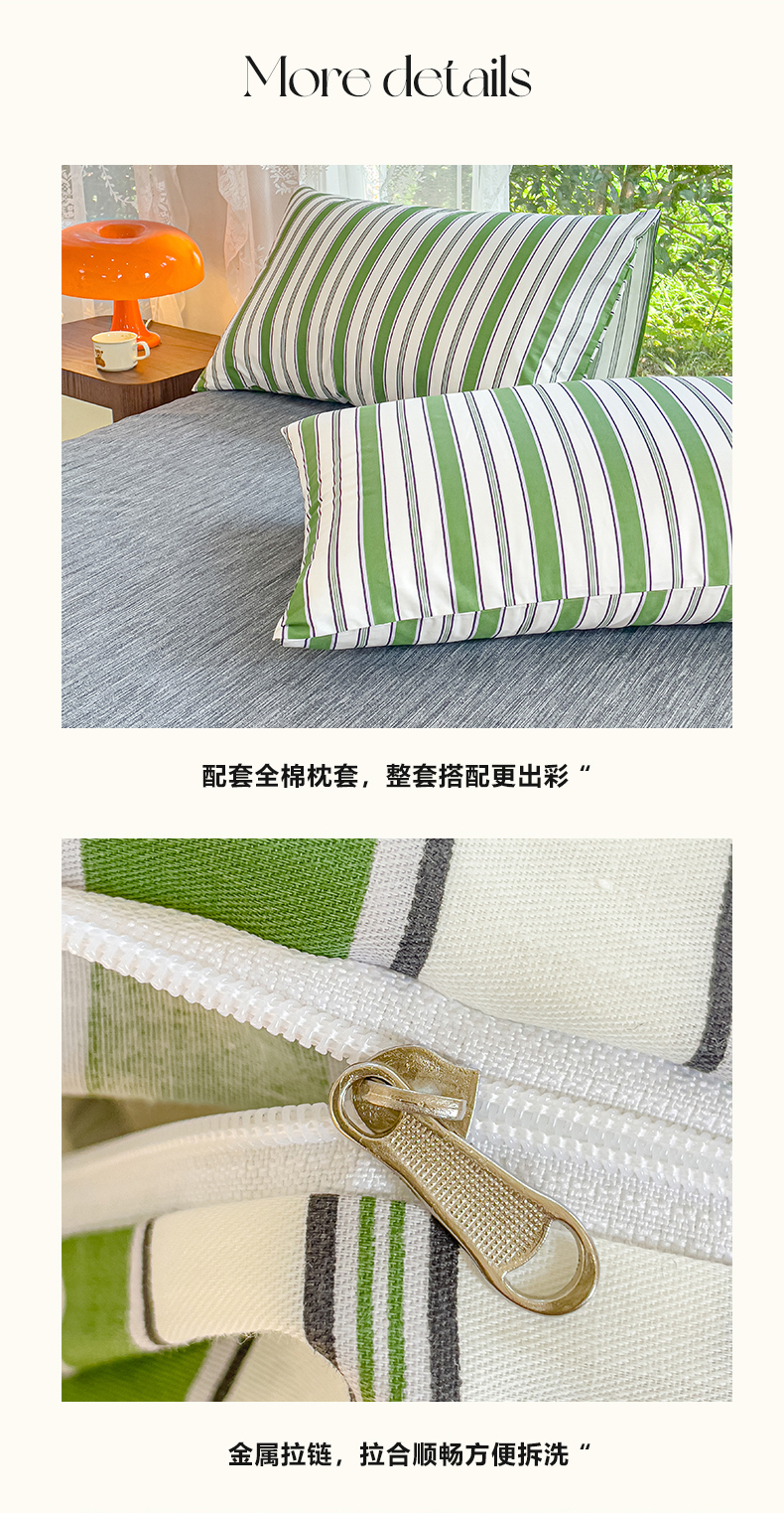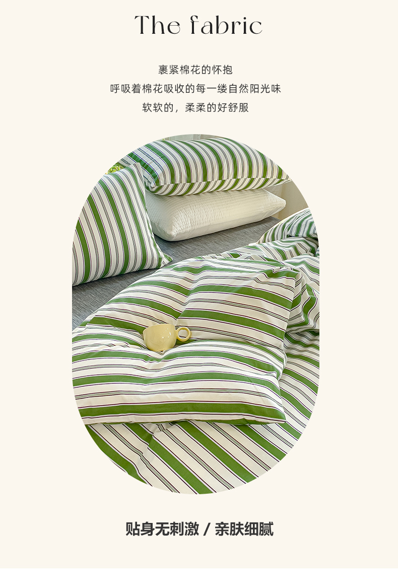 商品名称:感遇家纺 2023新款全棉印花四件套 绿条纹