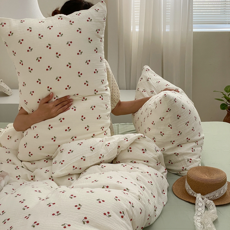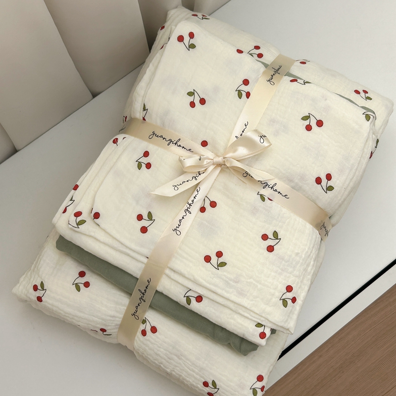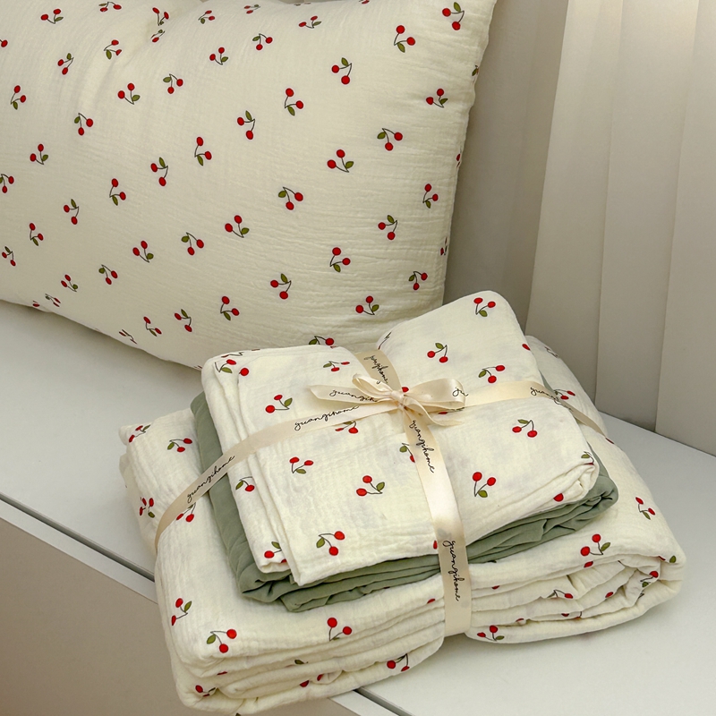 源启生活 2023全棉皱皱纱四件套 樱桃树