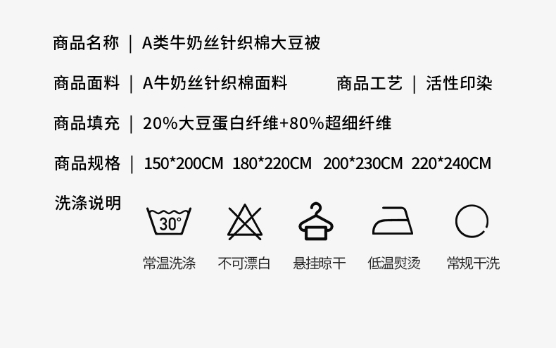 填充纤维种类: 大豆蛋白改性聚酯纤维