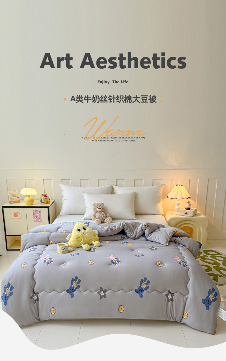 (总)薇玛仕 2025新款A类牛奶丝针织棉印花大豆被春秋被加厚冬被卡通儿童被