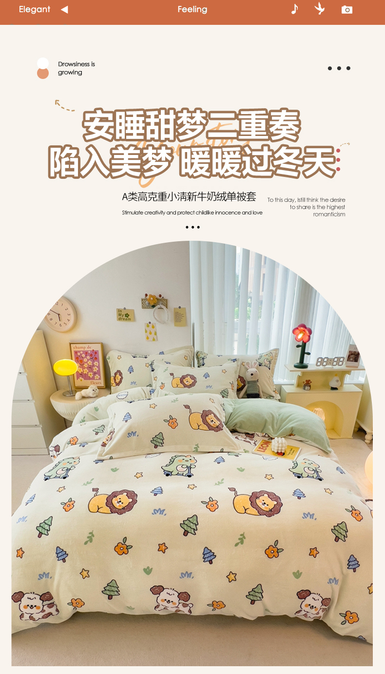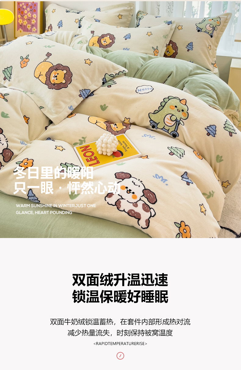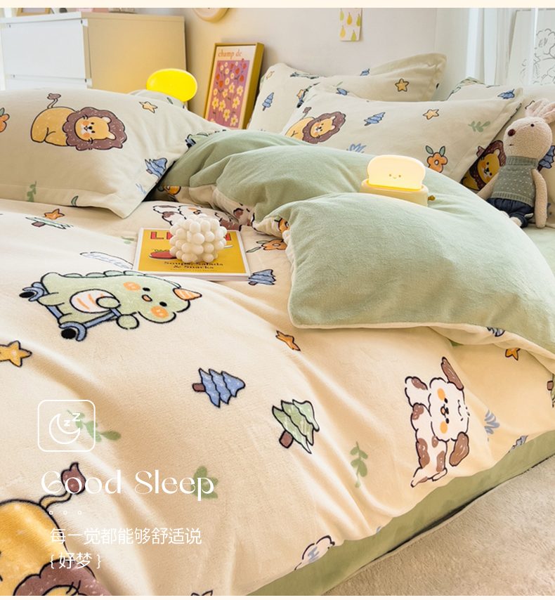 商品名称:全季家居 2023新款小清新A类高克重加厚印花牛奶绒被套单件 动物乐园