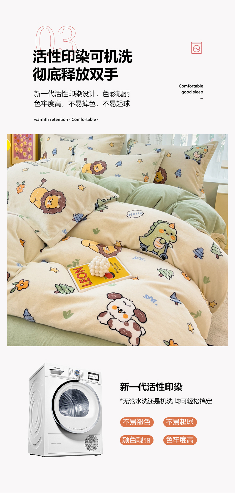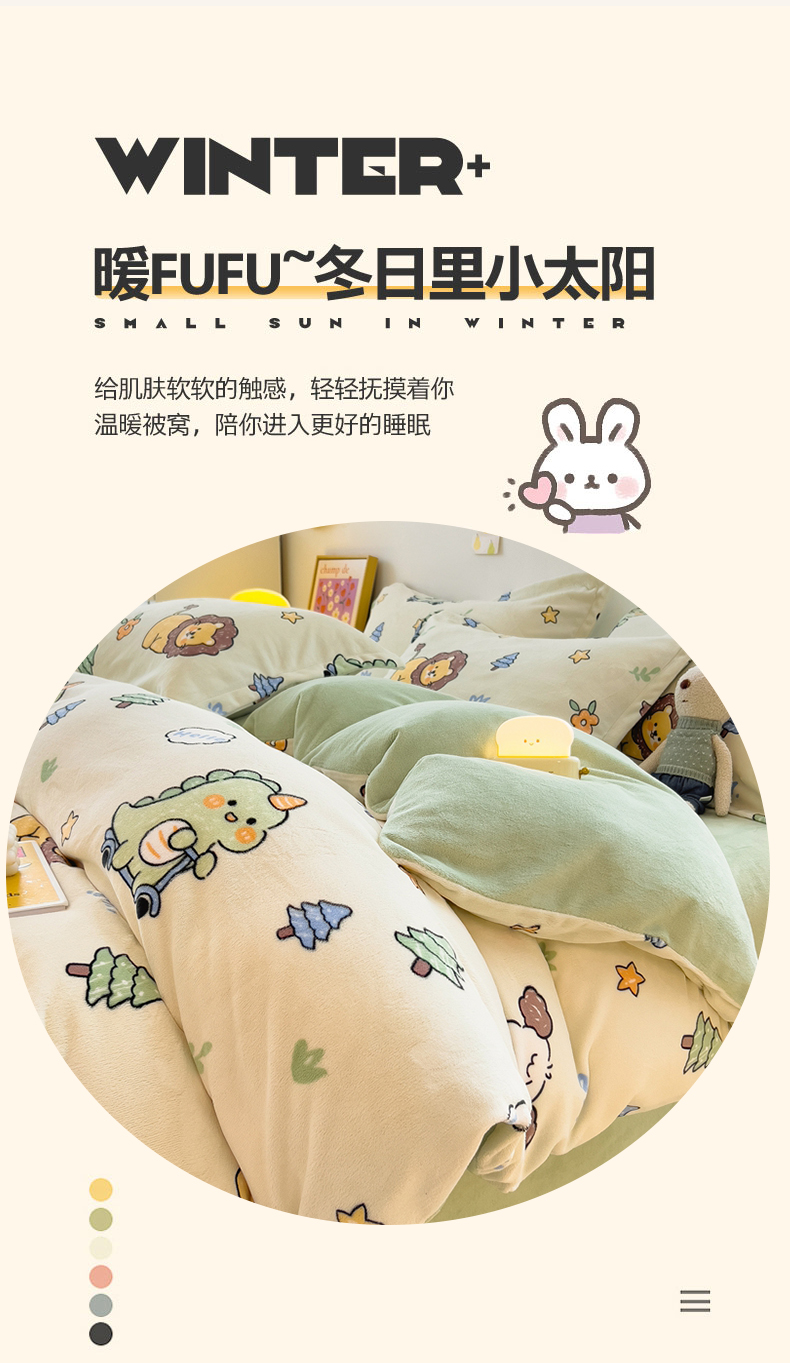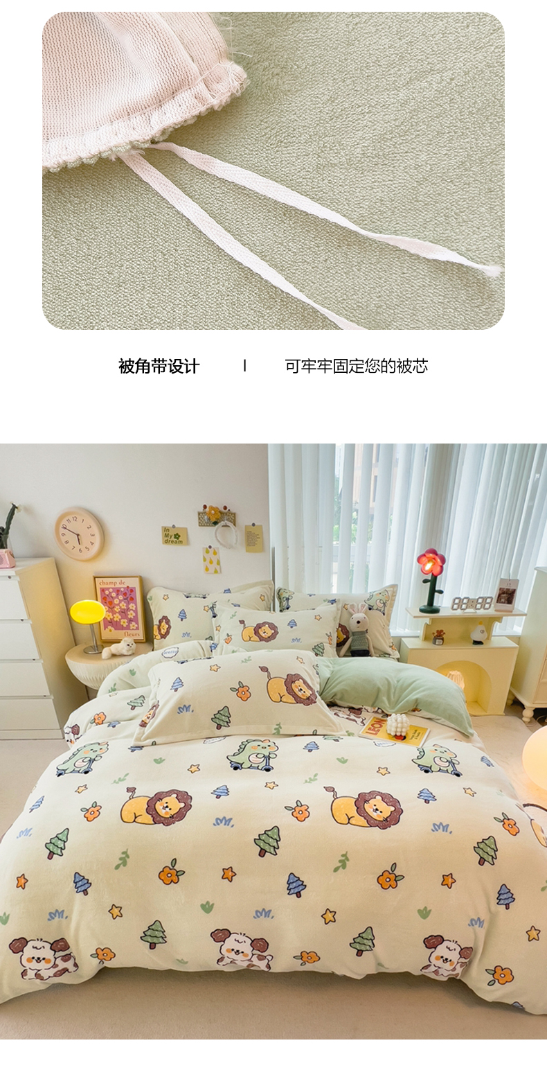 商品名称:全季家居 2023新款小清新A类高克重加厚印花牛奶绒被套单件 动物乐园