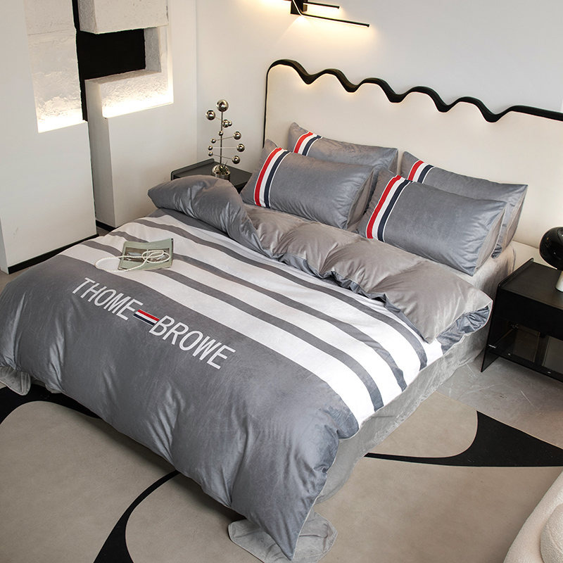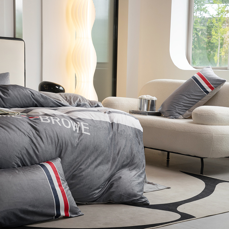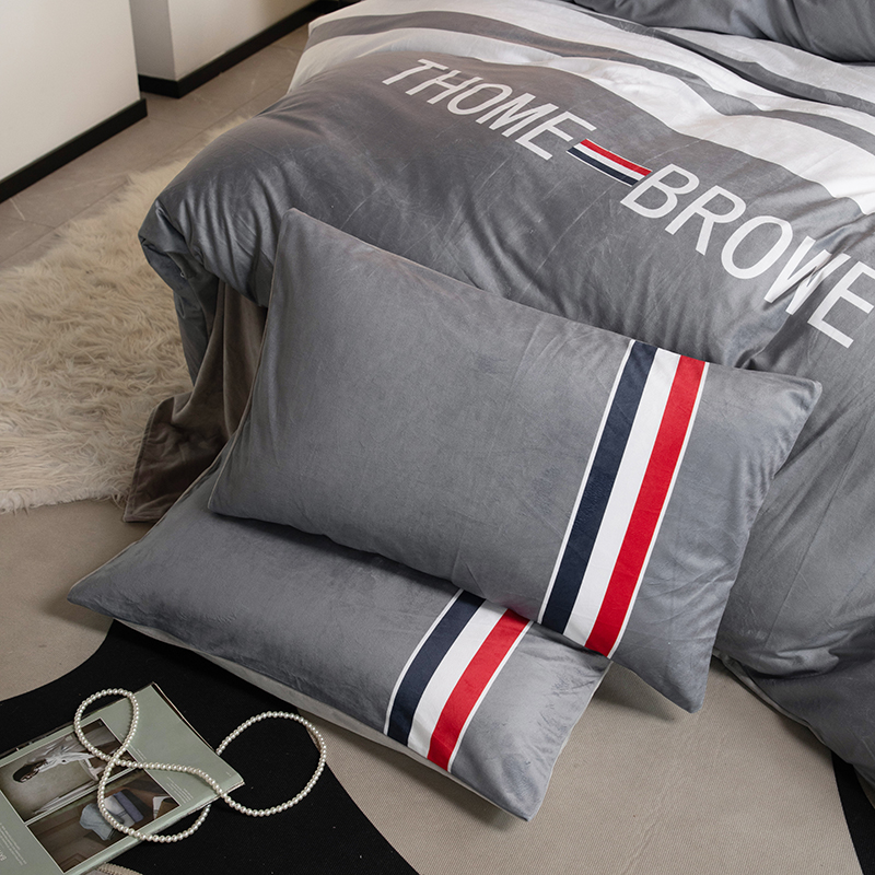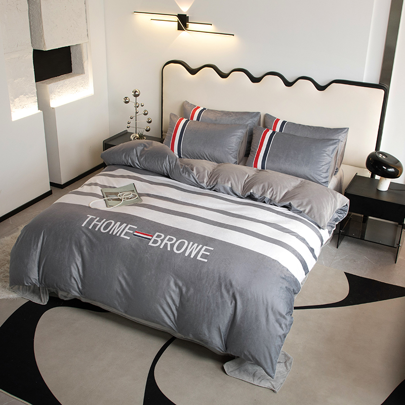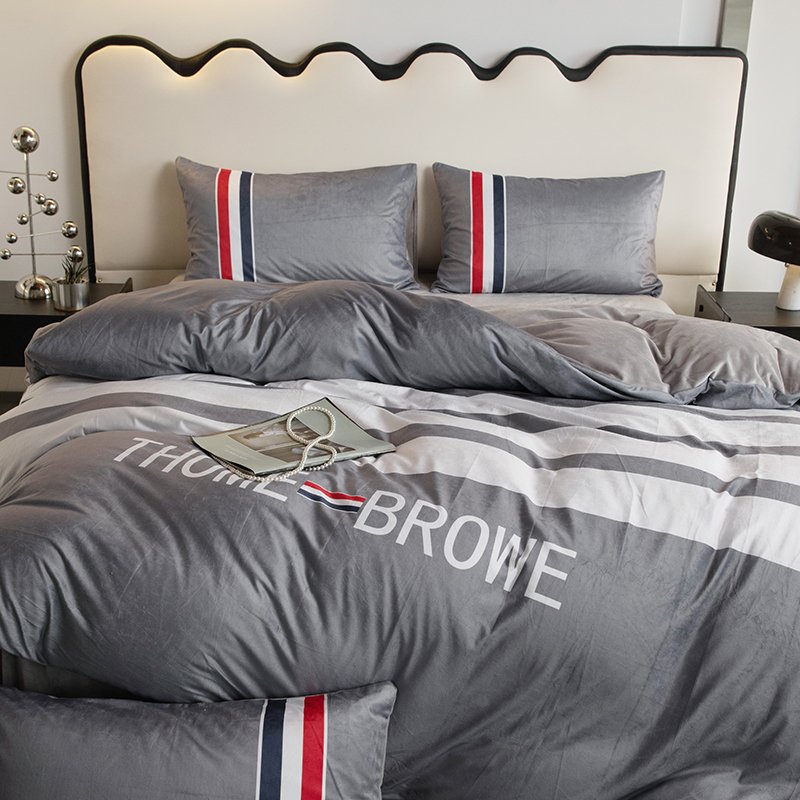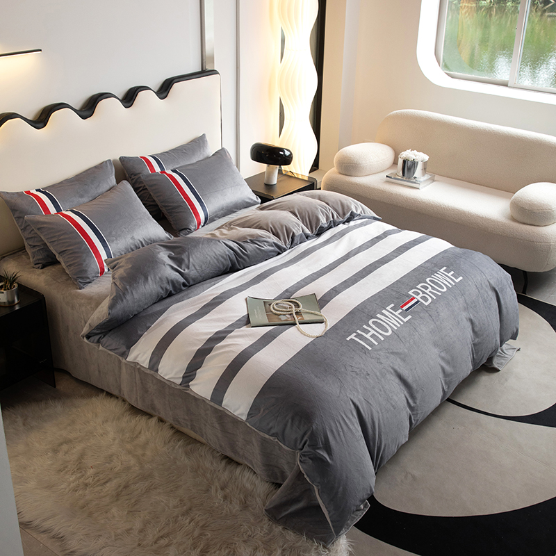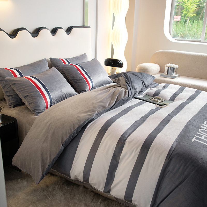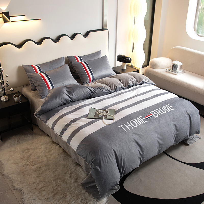 当前位置: 91家纺网 > 商品网购 > 床品套件 > 四件套 > 宝宝绒四件套 > 色鬼 2023新款网红款潮牌婴儿绒宝宝绒印花牛奶绒四件套 四条纹