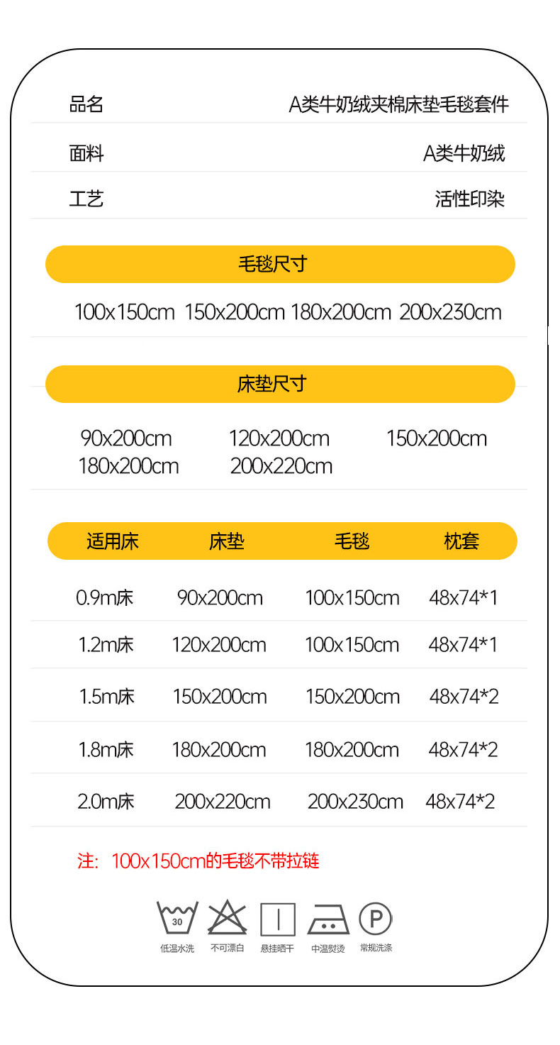 1.8m床垫四件套(1.8m床垫+2.0m毛毯+枕套) | ¥145.00 |