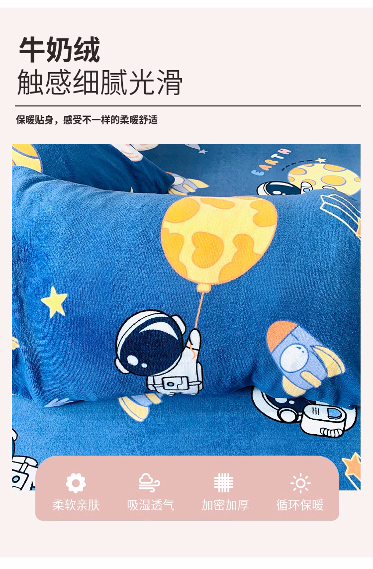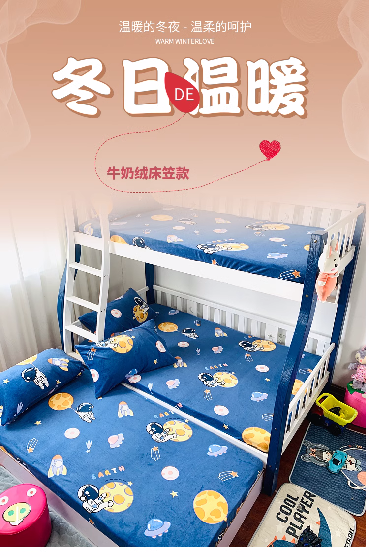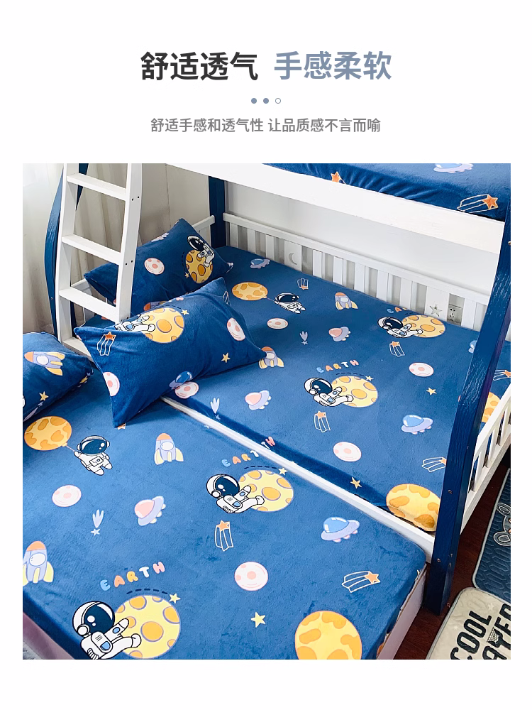 • 91家纺网 家纺一手货源 找家纺 小虾米 2023新款上下床加厚牛奶绒床笠 遨游太空