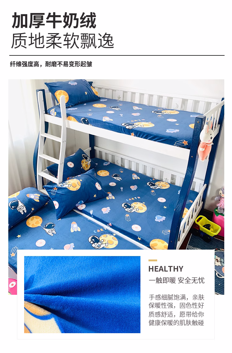 小虾米 2023新款上下床加厚牛奶绒床笠 遨游太空