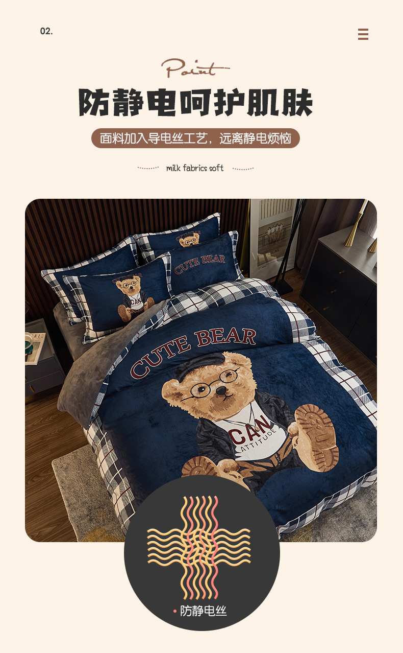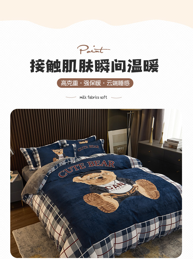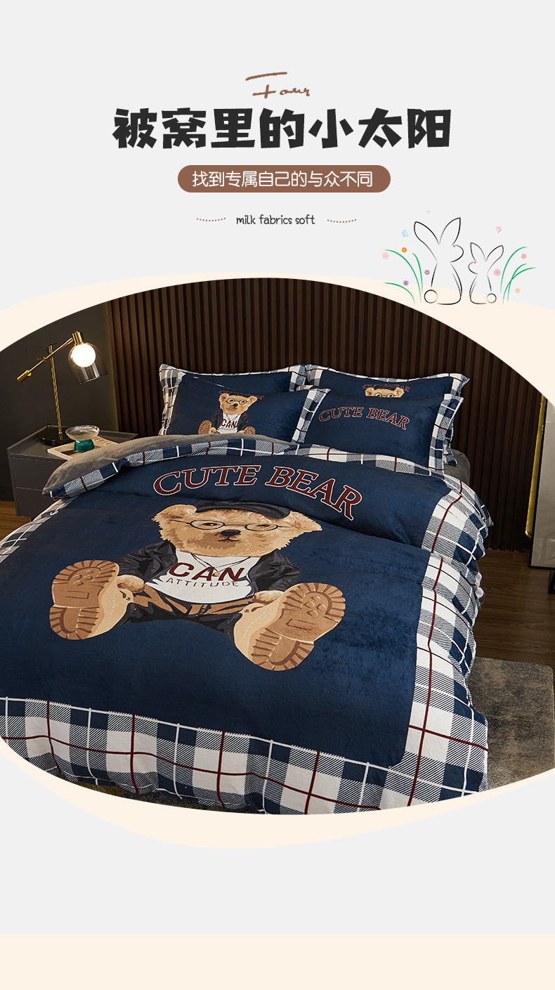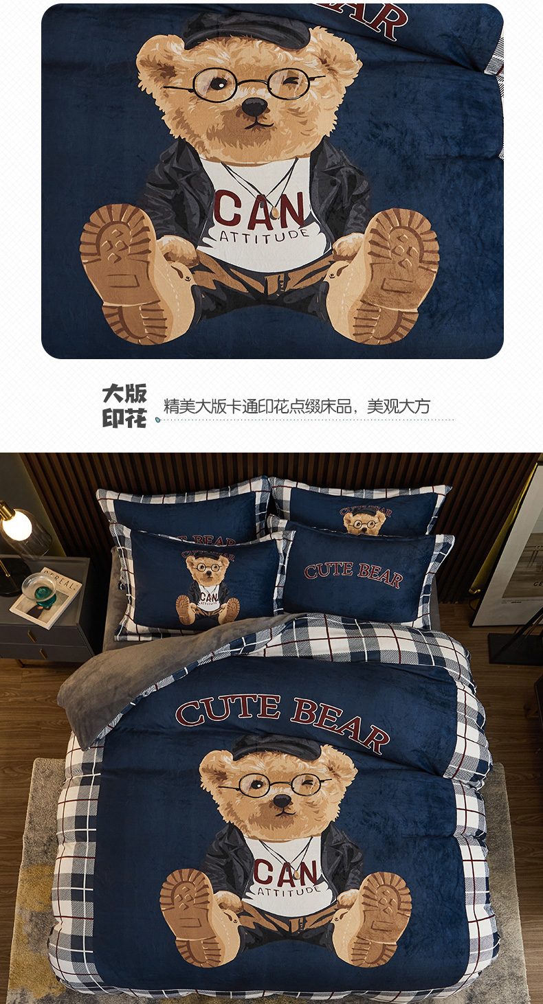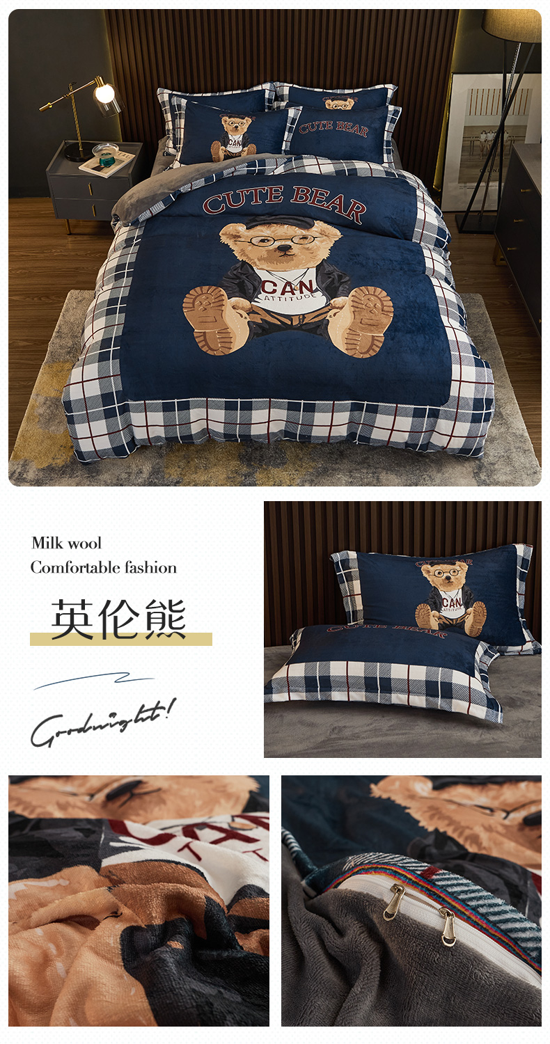 当前位置: 91家纺网 > 商品网购 > 床品套件 > 四件套 > 牛奶绒四件套 > 宅部落 2023新款大版卡通牛奶绒四件套法莱绒 6.英伦熊