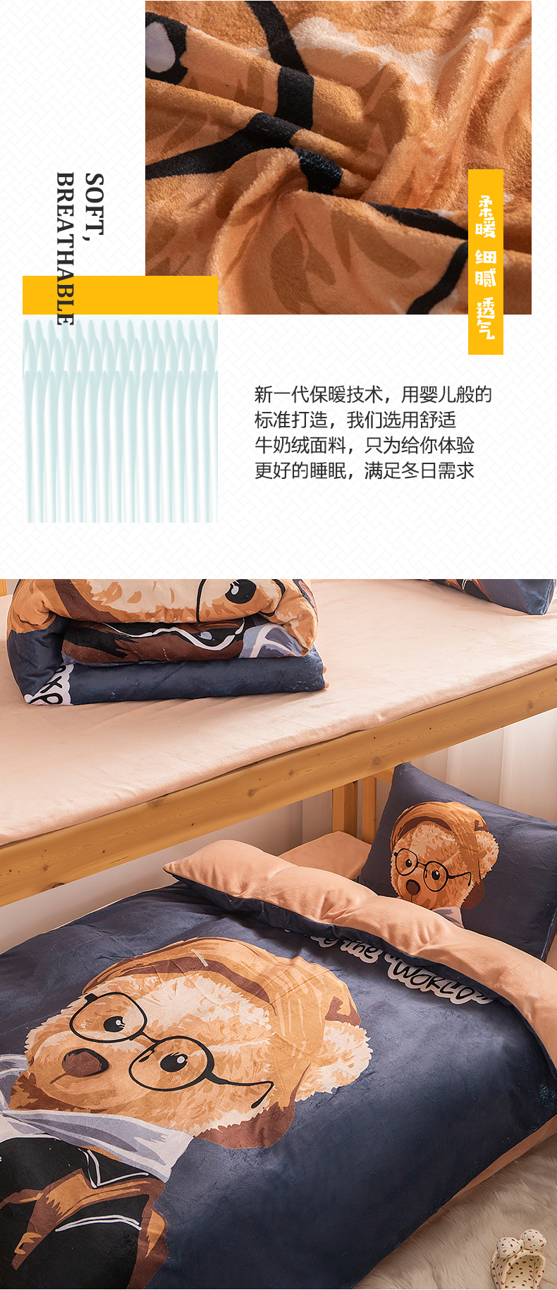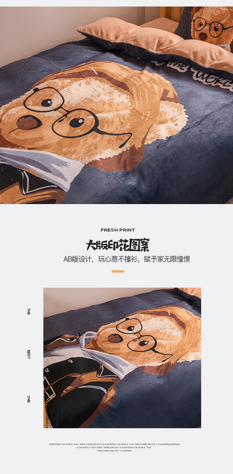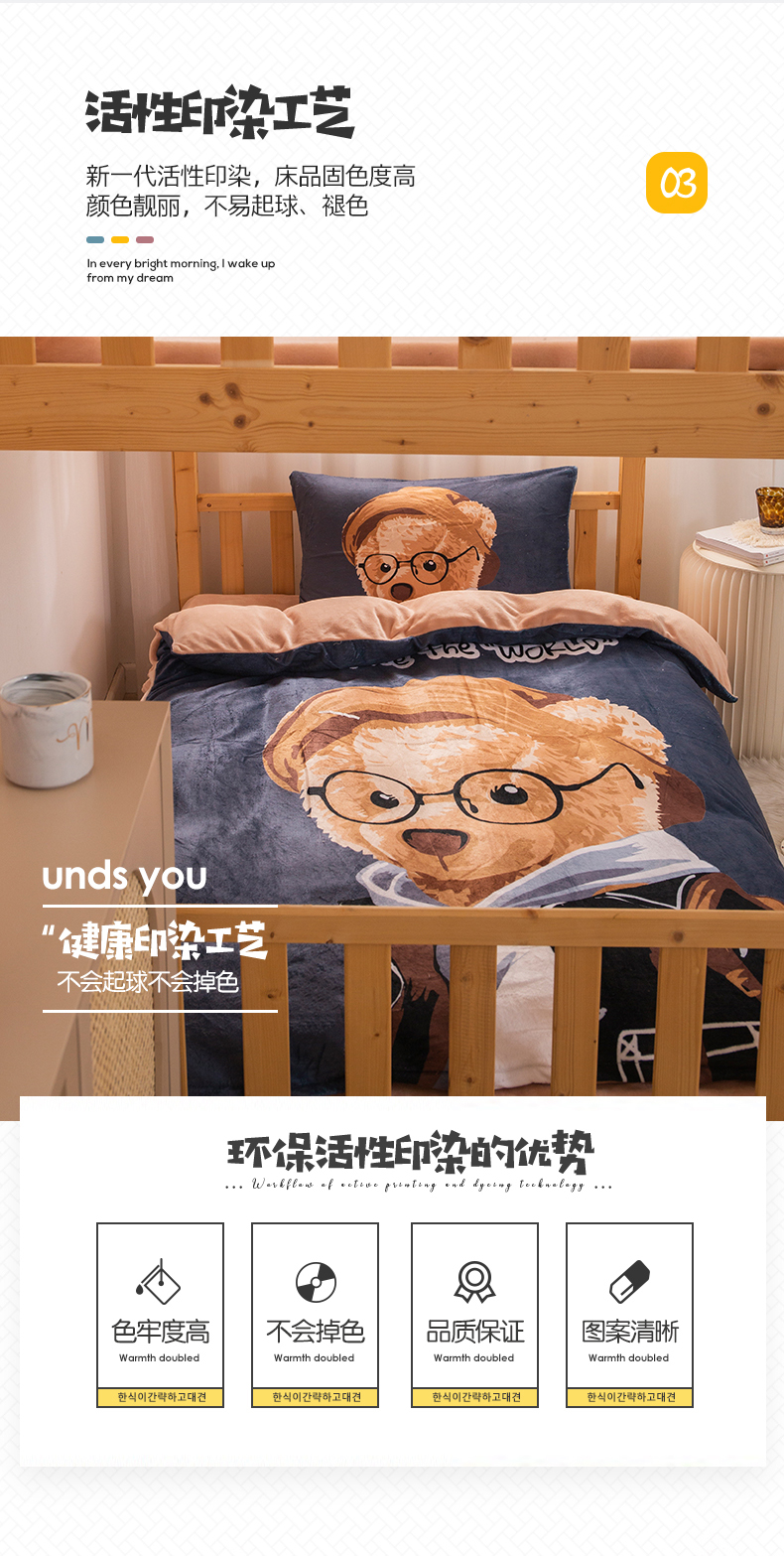 当前位置: 91家纺网 > 商品网购 > 床品套件 > 三件套 > 宅部落 2023新款大版卡通牛奶绒三件套 5.眼镜熊