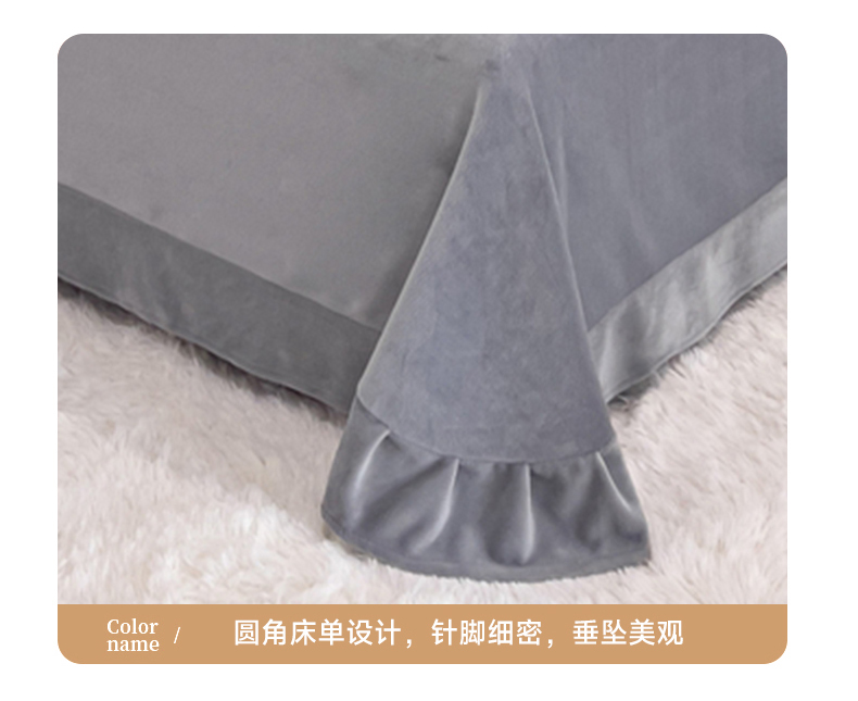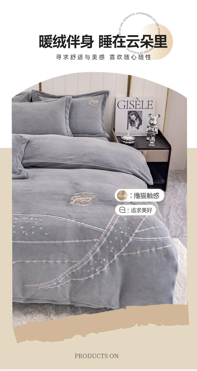 商品名称:慕克斯 2023新款全消光高克重刺绣牛奶绒四件套-奥丽莎 奥丽莎-绅士灰