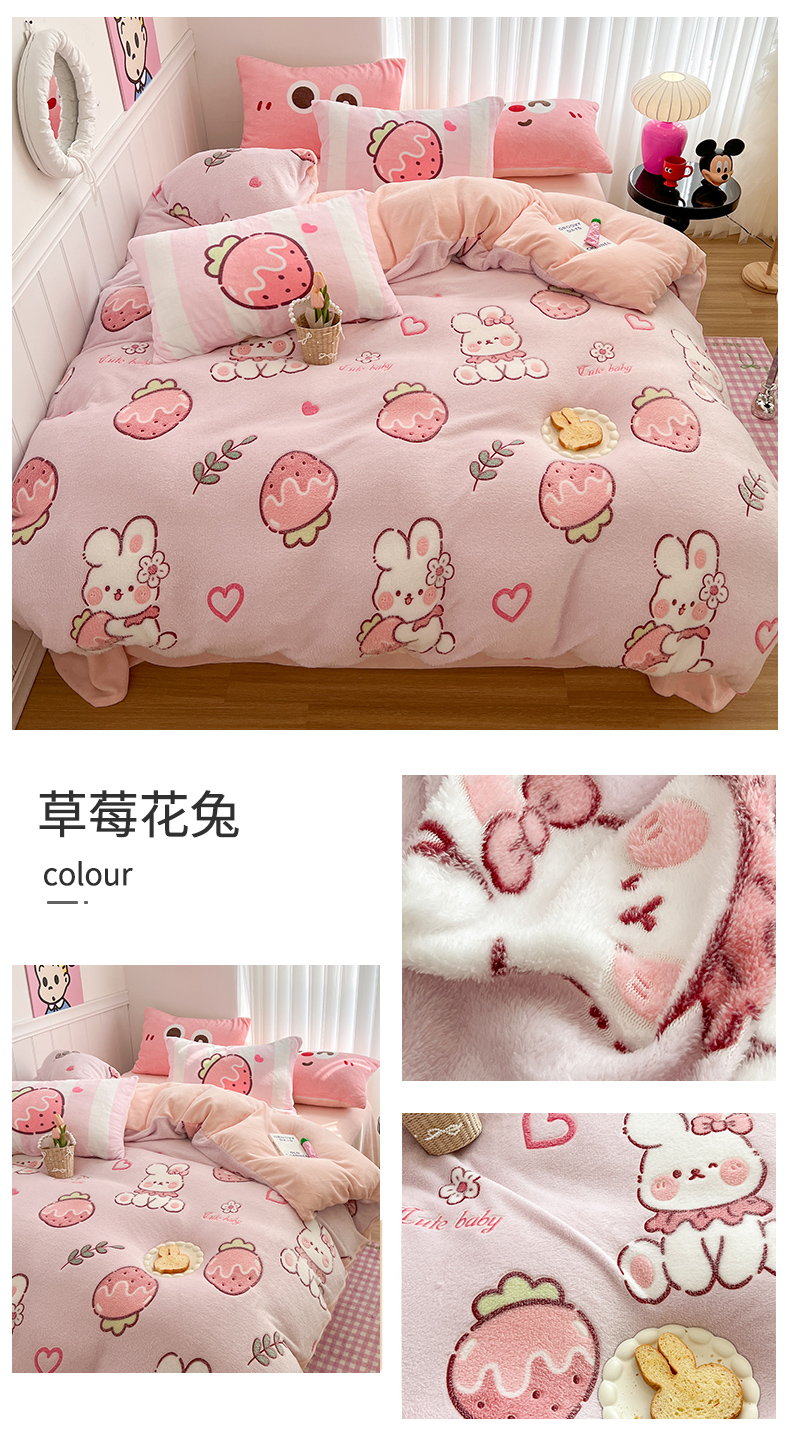 当前位置: 91家纺网 > 商品网购 > 床品套件 > 四件套 > 牛奶绒四件套 > 顾里家纺 2023新款ins韩风∙立体牛奶雪花绒系列四件套 草莓花兔