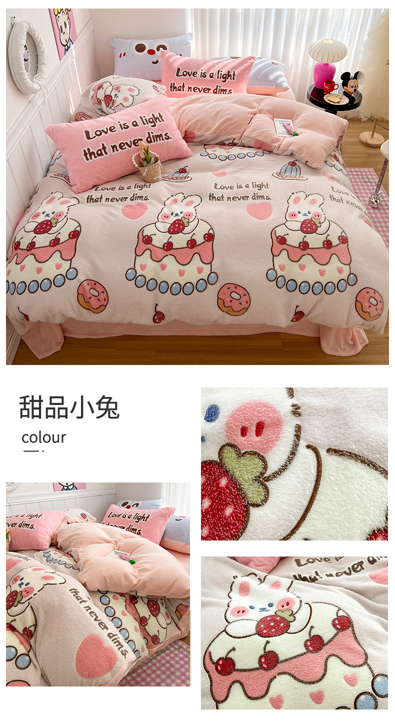 当前位置: 91家纺网 > 商品网购 > 床品套件 > 四件套 > 牛奶绒四件套 > 顾里家纺 2023新款ins韩风∙立体牛奶雪花绒系列四件套 甜品小兔