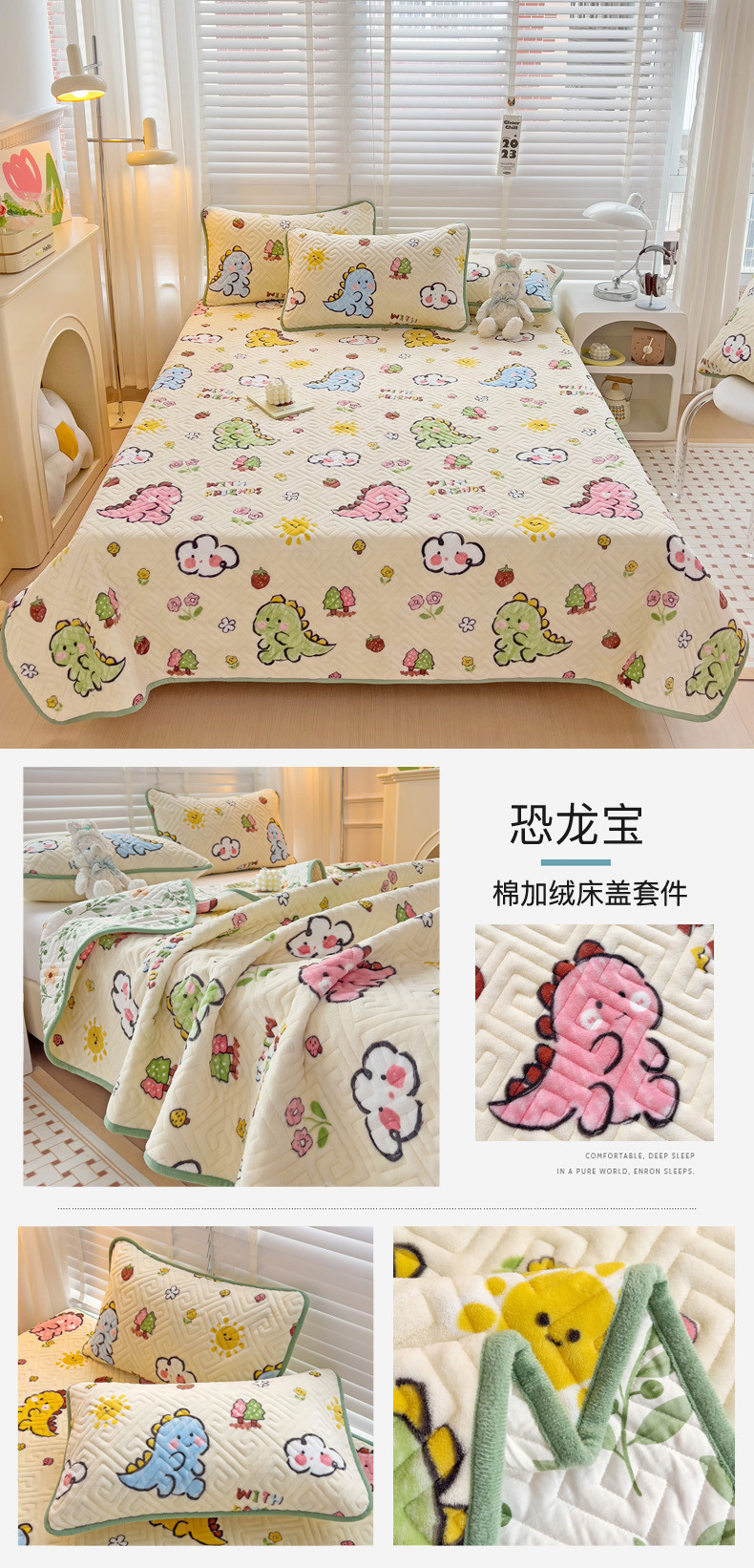羽爱 2024新款棉加绒床盖套件可爱恐龙,可爱恐龙