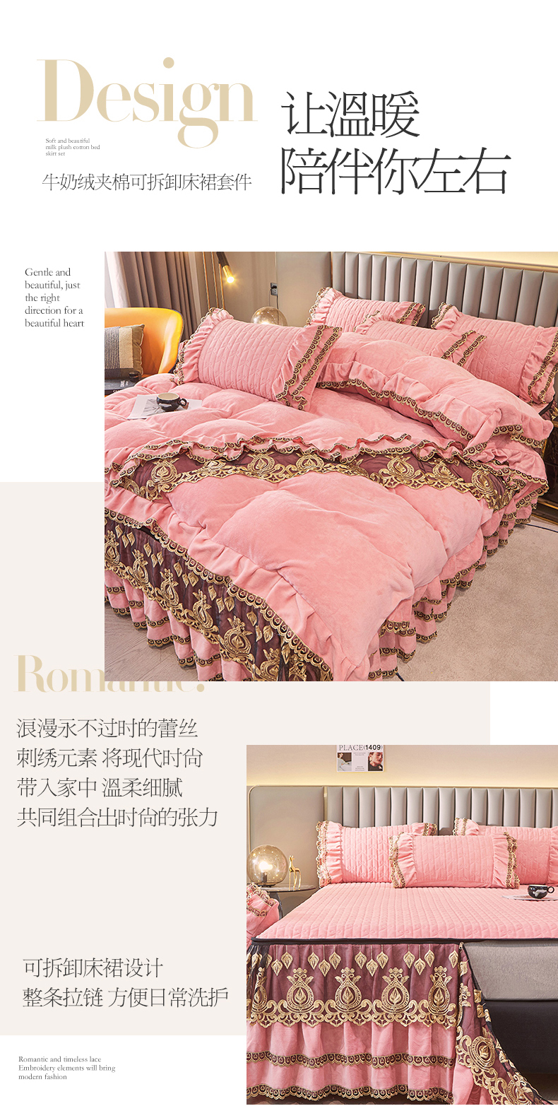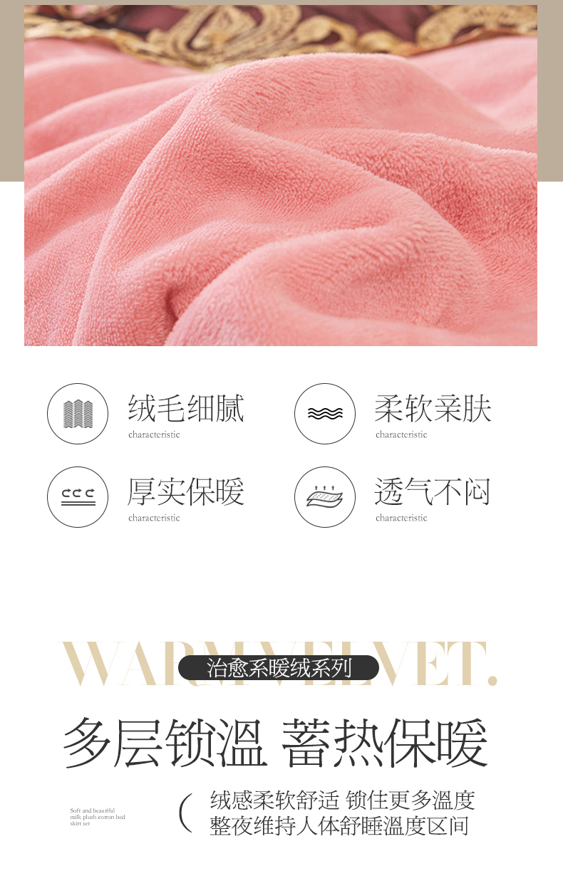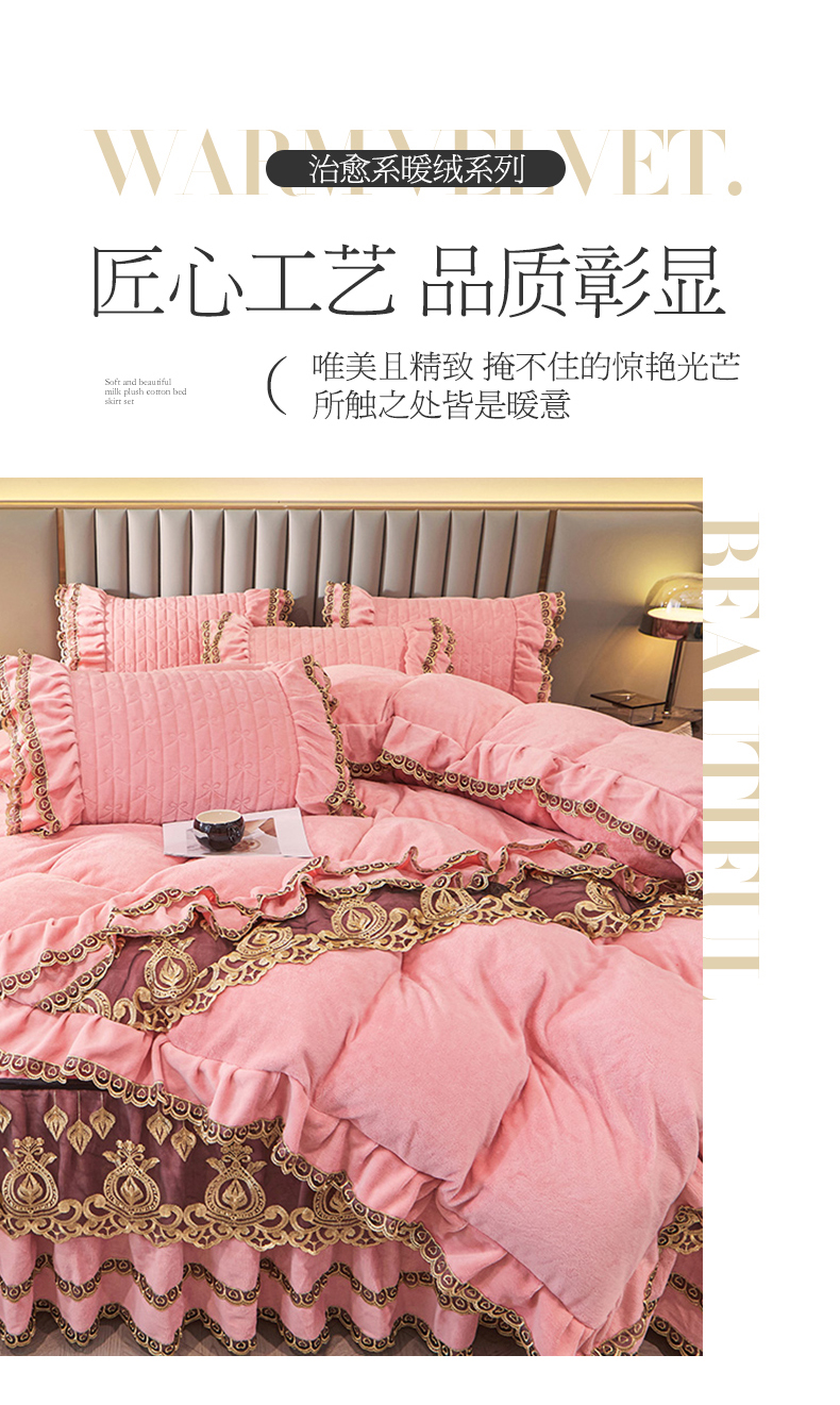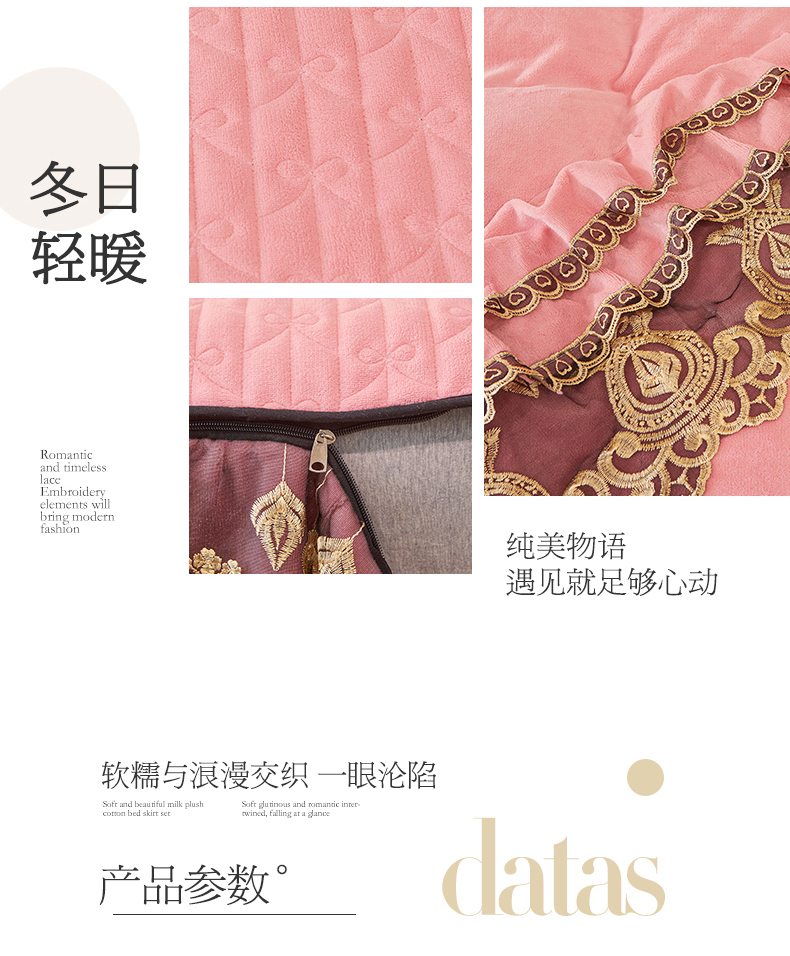 • 91家纺网 家纺一手货源 找家纺 虹星家纺 2023新款牛奶绒夹棉蕾丝可拆卸床裙系列四件套 梦幻巴黎 蜜玉